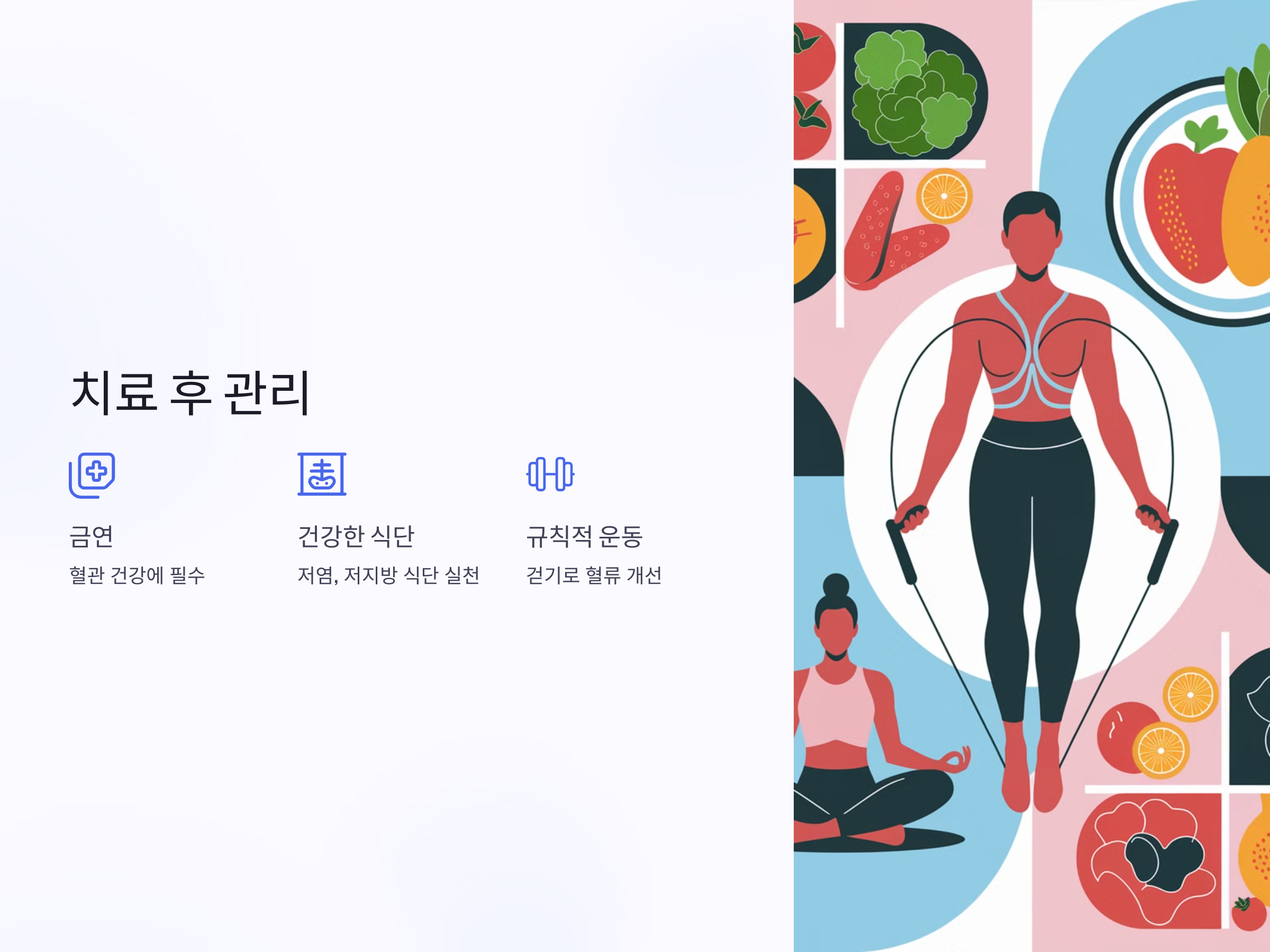 - 주의사항: 시술 후에도 금연, 식이 조절 및 운동을 통한 관리가 필요함