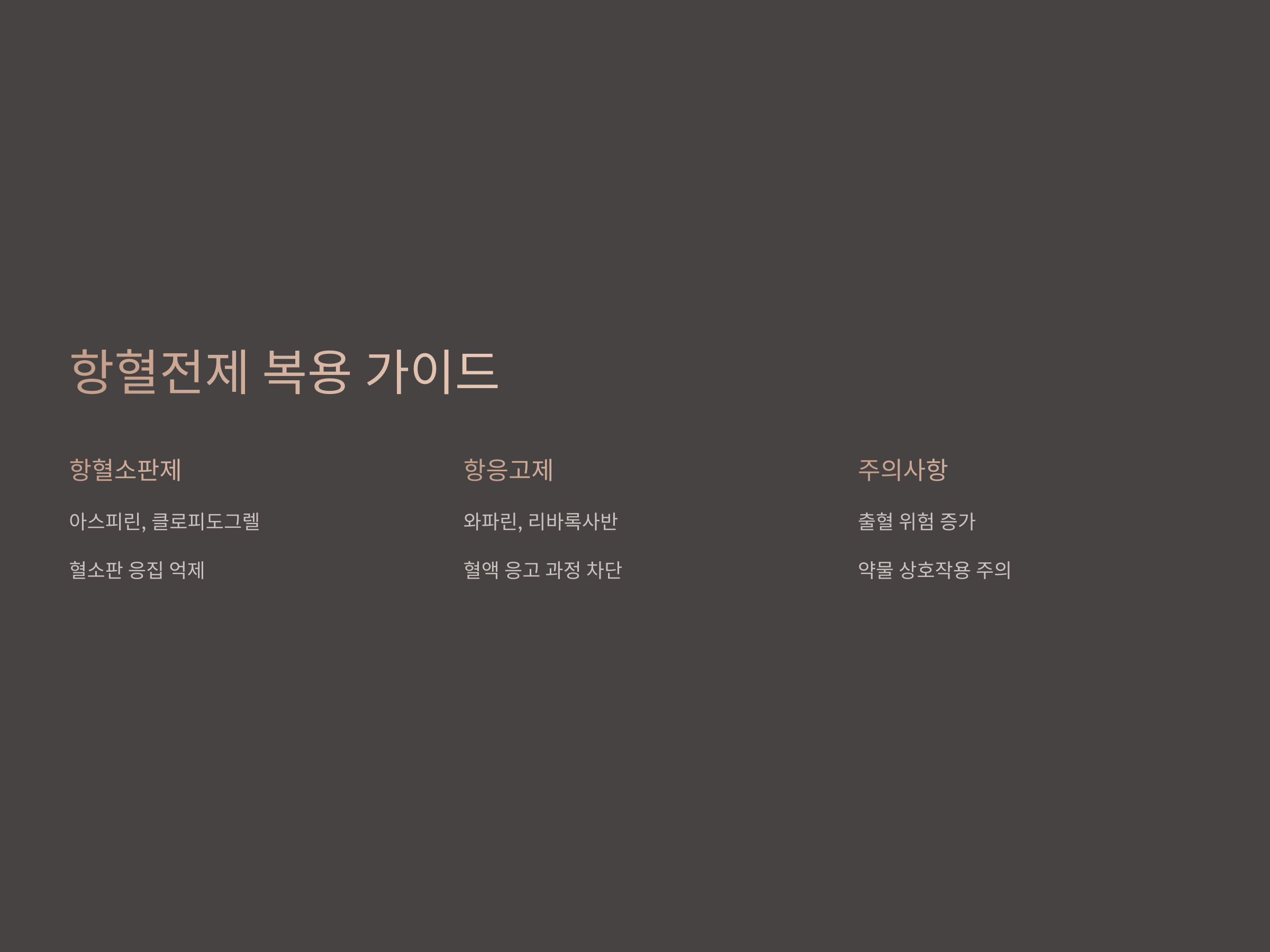 - 항혈소판제 (Aspirin, Clopidogrel)