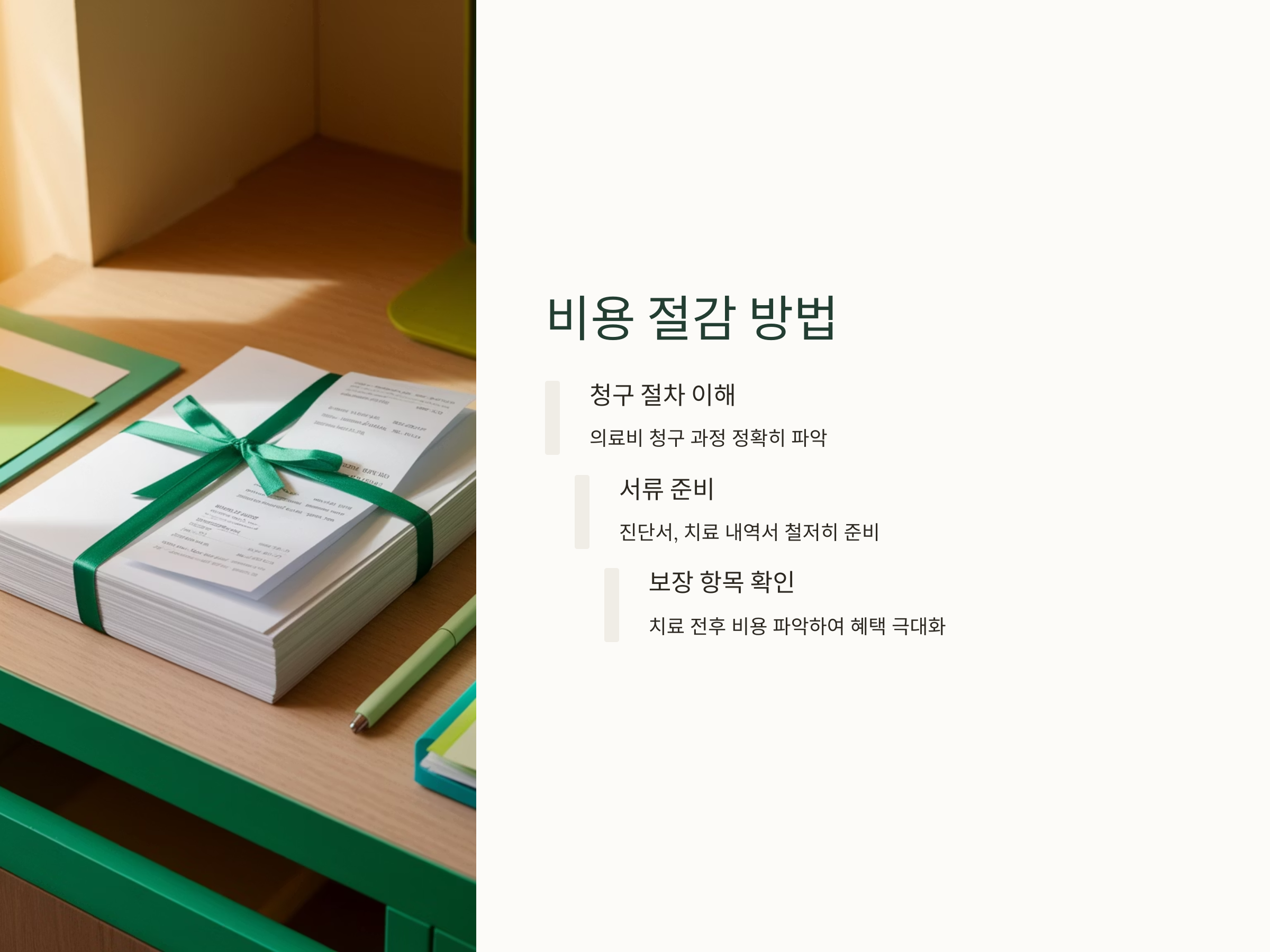 스텐트 삽입술과 같은 고가의 치료를 받을 때 실손보험을 통해 비용을 절감할 수 있습니다. 실제로 많은 사람들이 실손보험을 통해 큰 의료비 부담을 덜고 있습니다. 하지만, 실손보험을 이용하려면, 의료비 청구 절차를 정확히 이해하고, 필요한 서류를 잘 준비하는 것이 중요합니다.