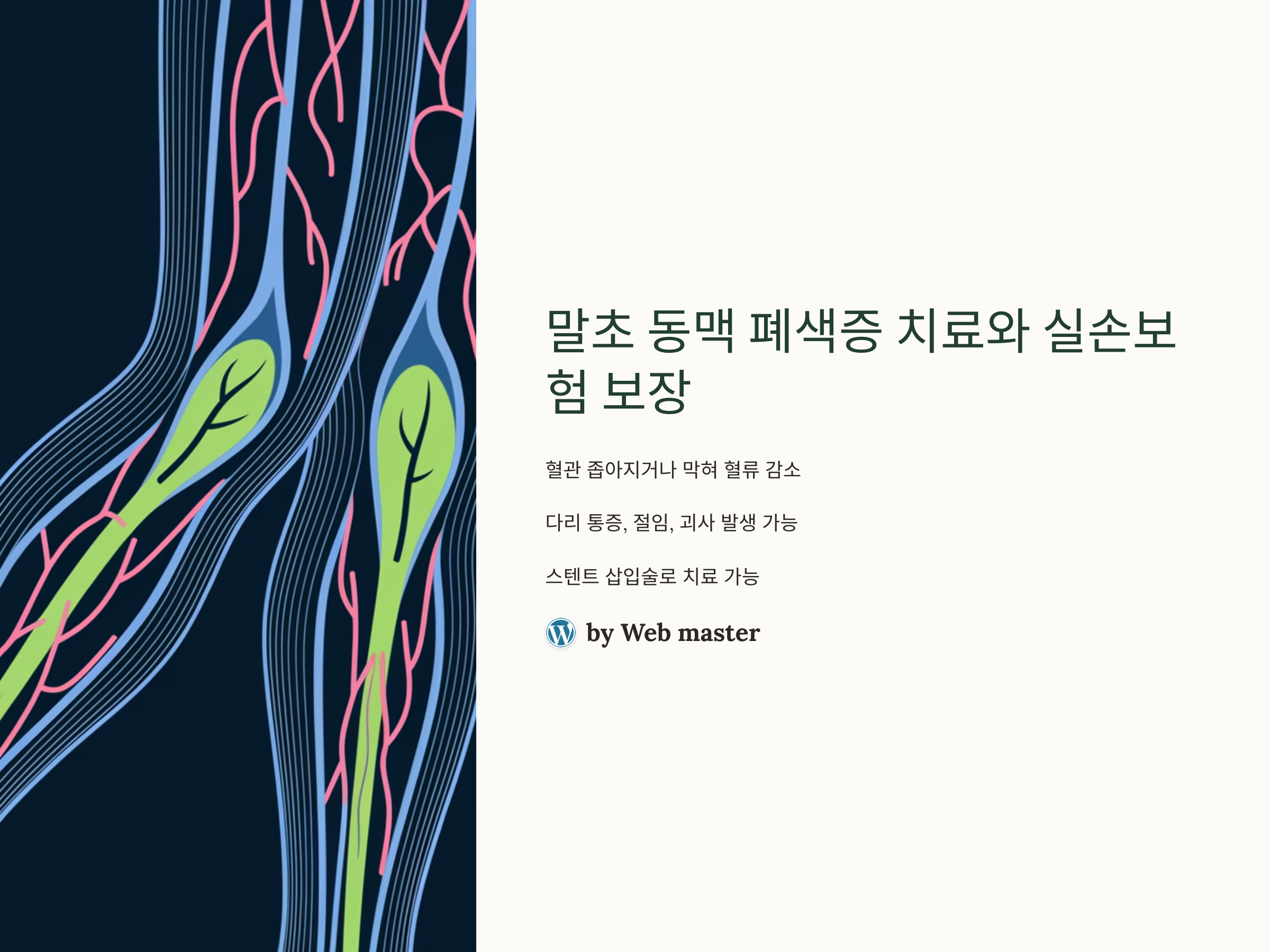 말초 동맥 폐색증 치료에 필요한 스텐트 삽입술은 효과적인 치료 방법 중 하나로, 실손보험을 통해 상당 부분 비용을 절감할 수 있습니다. 그러나 보험 상품마다 보장 범위가 다르기 때문에, 본인의 보험 약관을 정확히 확인하고, 필요한 절차를 잘 따르는 것이 중요합니다. 실손보험을 잘 활용하면, 의료비 부담을 크게 줄일 수 있으며, 보다 효율적인 치료를 받을 수 있습니다.