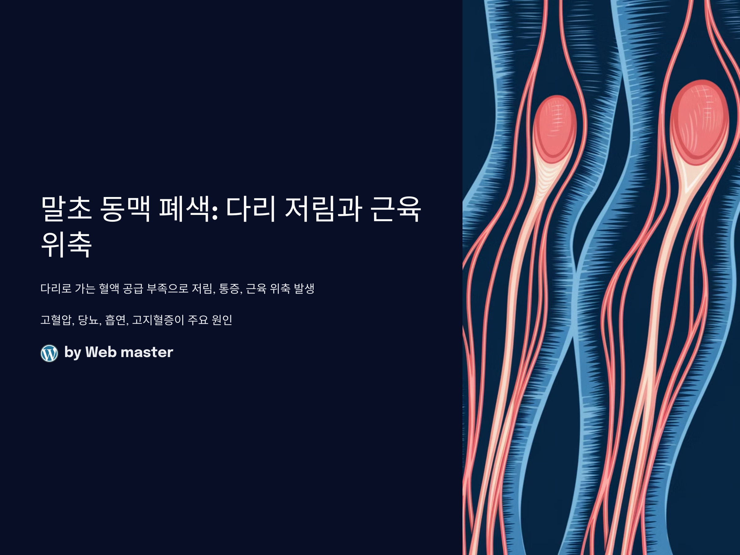 말초 동맥 폐색(PAD, Peripheral Arterial Disease)은 다리로 가는 혈액이 제대로 공급되지 않아 다양한 증상을 일으키는 질환입니다. 혈액이 제대로 흐르지 않으면 다리의 근육과 조직에 산소와 영양이 부족해져 저림, 통증, 심각한 경우 근육 위축이 발생할 수 있습니다. 이 글에서는 말초 동맥 폐색의 증상, 원인, 치료법을 살펴보며 이를 어떻게 예방하고 관리할 수 있는지에 대해 설명하겠습니다.