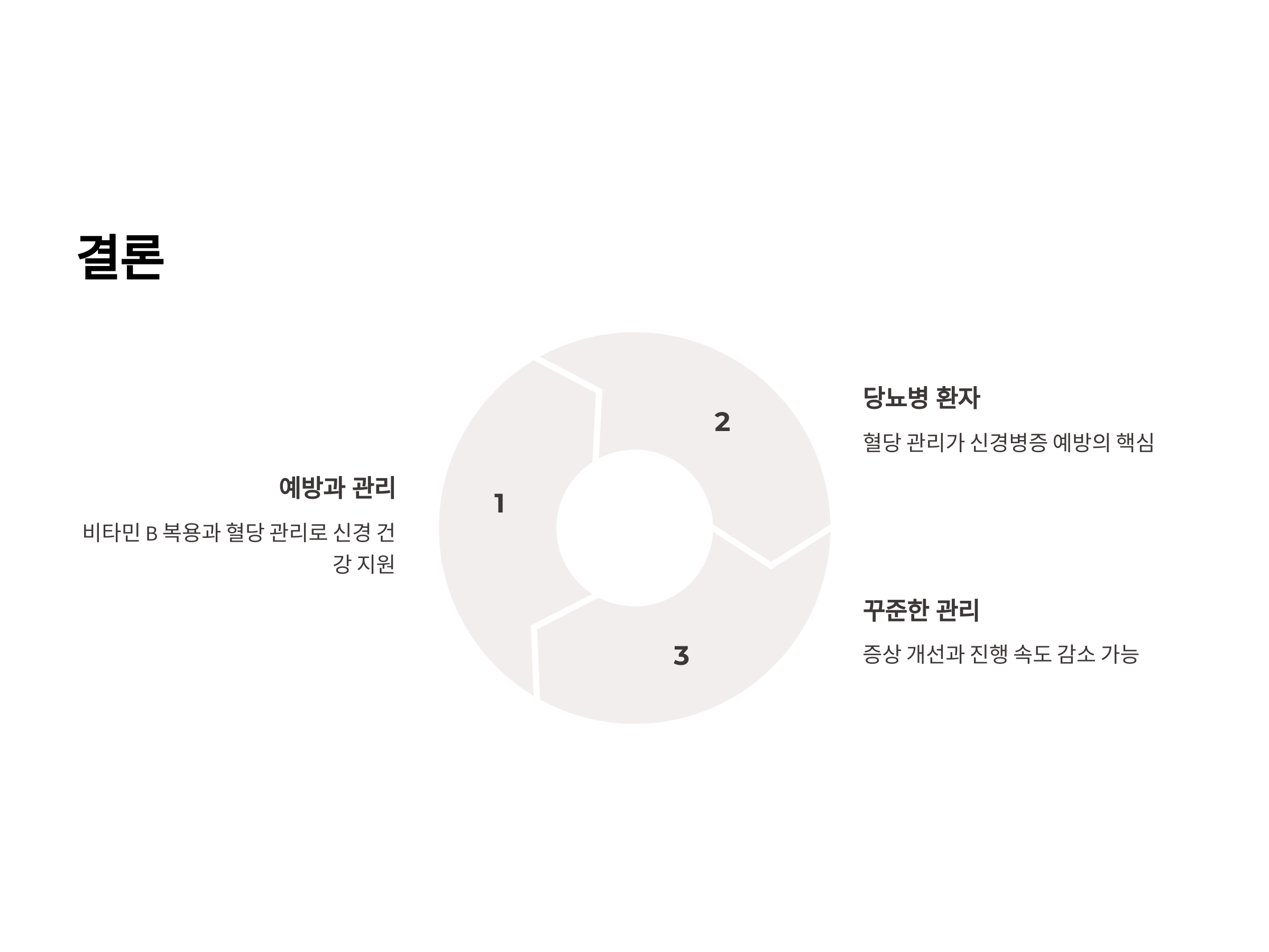 말초 신경병증은 예방과 관리가 중요합니다. 비타민 B 복용과 혈당 관리를 통해 신경 건강을 지원하고, 증상을 개선할 수 있습니다. 당뇨병 환자는 특히 혈당 관리가 신경병증 예방에 핵심이므로, 꾸준한 관리가 필요합니다.