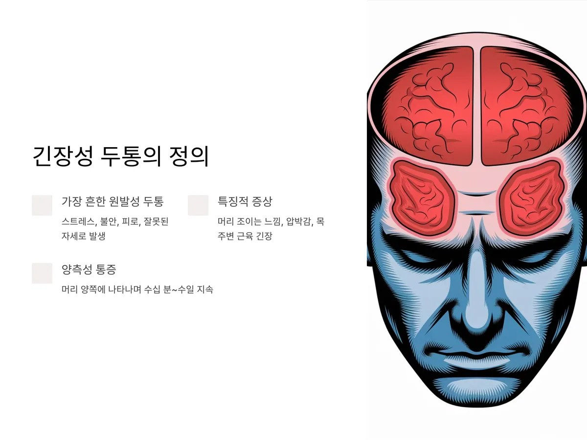 이 글에서는 긴장성 두통의 정확한 원인과 증상을 바탕으로, 집에서 실천할 수 있는 실질적인 대처법까지 모두 다뤄보겠습니다. 끝까지 읽으시면 자신이나 가족의 건강을 지키는 실마리를 찾을 수 있을 것입니다.