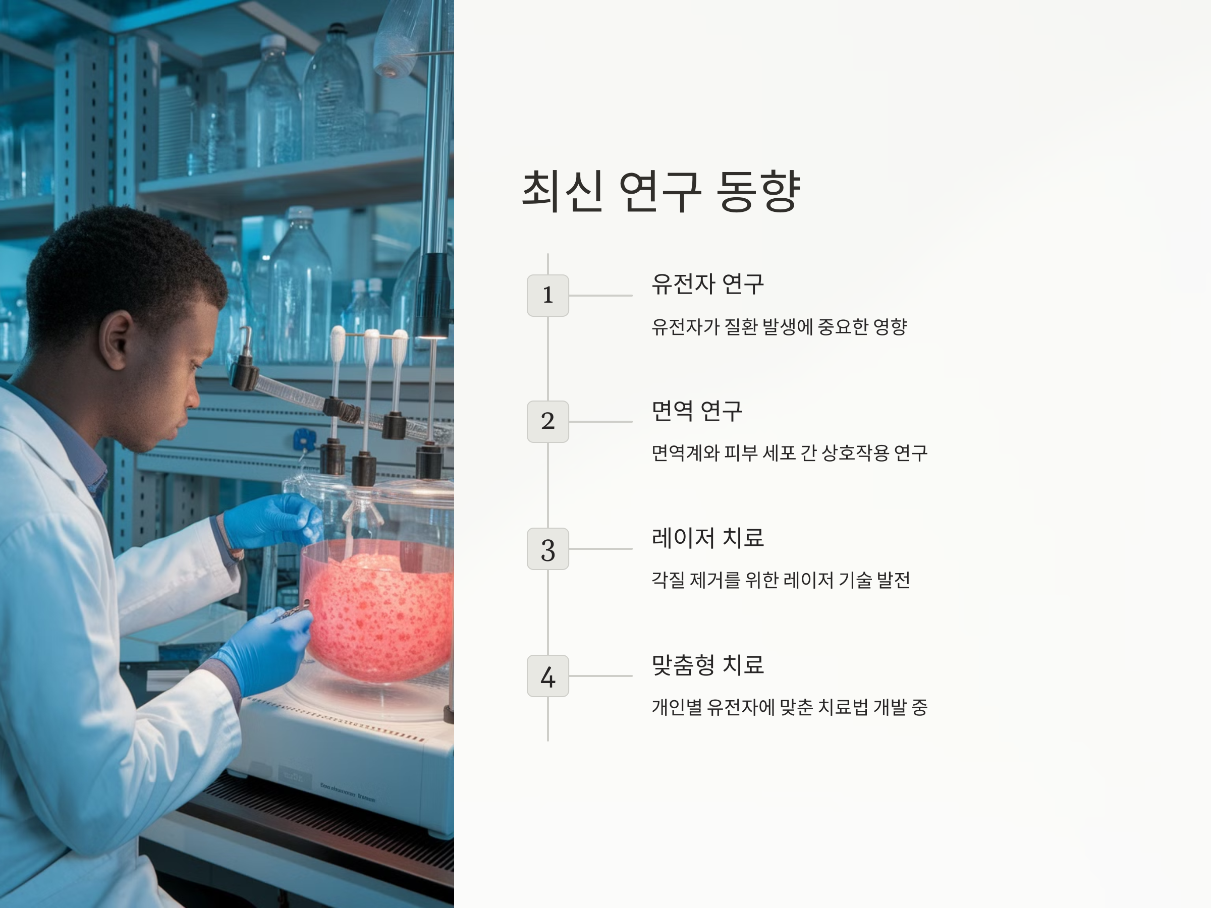 - 유전자 연구: 최근 연구에서는 유전자가 이 질환의 발생에 중요한 영향을 미친다고 밝혀졌습니다. 향후 유전자 치료나 맞춤형 치료법이 개발될 가능성이 있습니다.