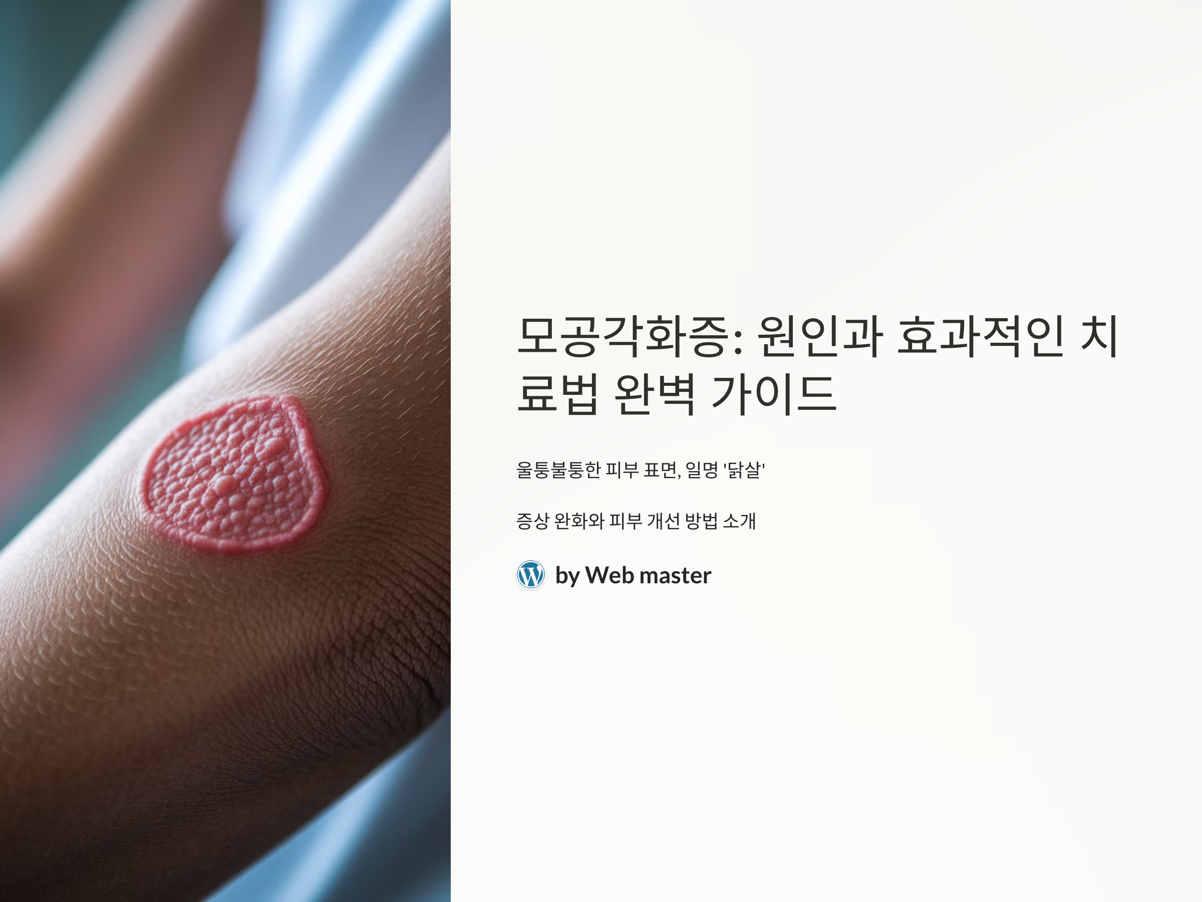 모공각화증(keratosis pilaris)은 피부에 울퉁불퉁한 돌기나 작은 결절이 생기는 피부 질환으로, 보통 팔꿈치, 무릎, 뒷목 등 부위에 많이 발생합니다. 이 질환은 흔히 "닭살"이라고 불리며, 피부 표면에 많은 모공이 막히고 각질이 축적되어 나타납니다. 비록 건강에 큰 위험을 주지 않지만, 외관상 불편함을 초래할 수 있어 많은 사람들이 치료법을 찾고 있습니다. 이 글에서는 모공각화증의 원인, 증상, 그리고 효과적인 치료 방법을 다루고, 최신 연구와 함께 모공각화증을 관리하는 법에 대해 상세히 설명하겠습니다.