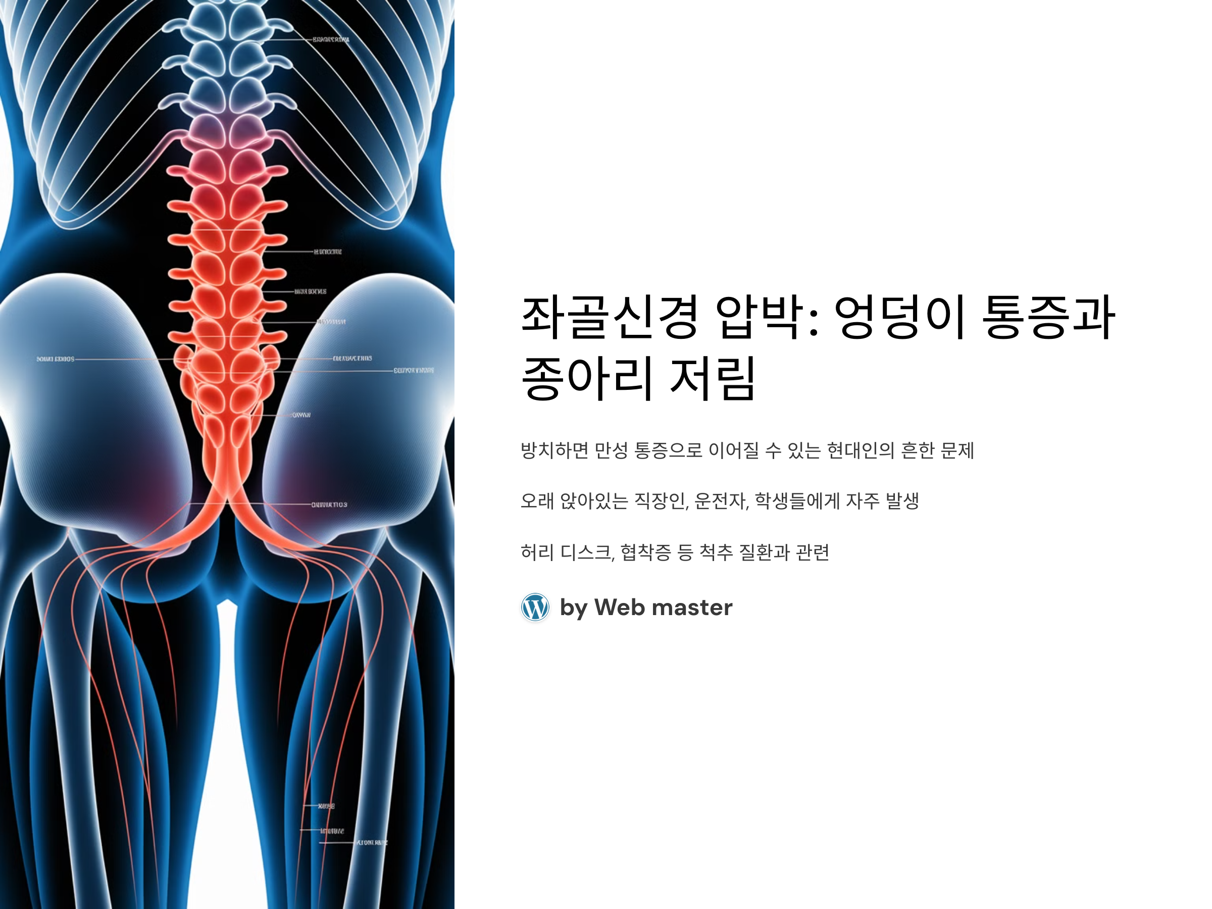좌골신경 압박으로 인한 엉덩이 통증과 종아리 저림은 현대인들에게 흔한 문제입니다. 특히 오래 앉아있는 직장인, 운전자, 학생들에게 자주 발생하는데, 이를 방치하면 만성 통증으로 이어질 수 있습니다. 최근 연구에 따르면 좌골신경통은 단순한 근육 문제뿐만 아니라 허리 디스크, 협착증 등 척추 질환과도 관련이 깊다고 합니다. 이 글에서는 좌골신경 압박의 원인과 증상, 효과적인 치료 및 예방 방법을 자세히 알아보겠습니다.