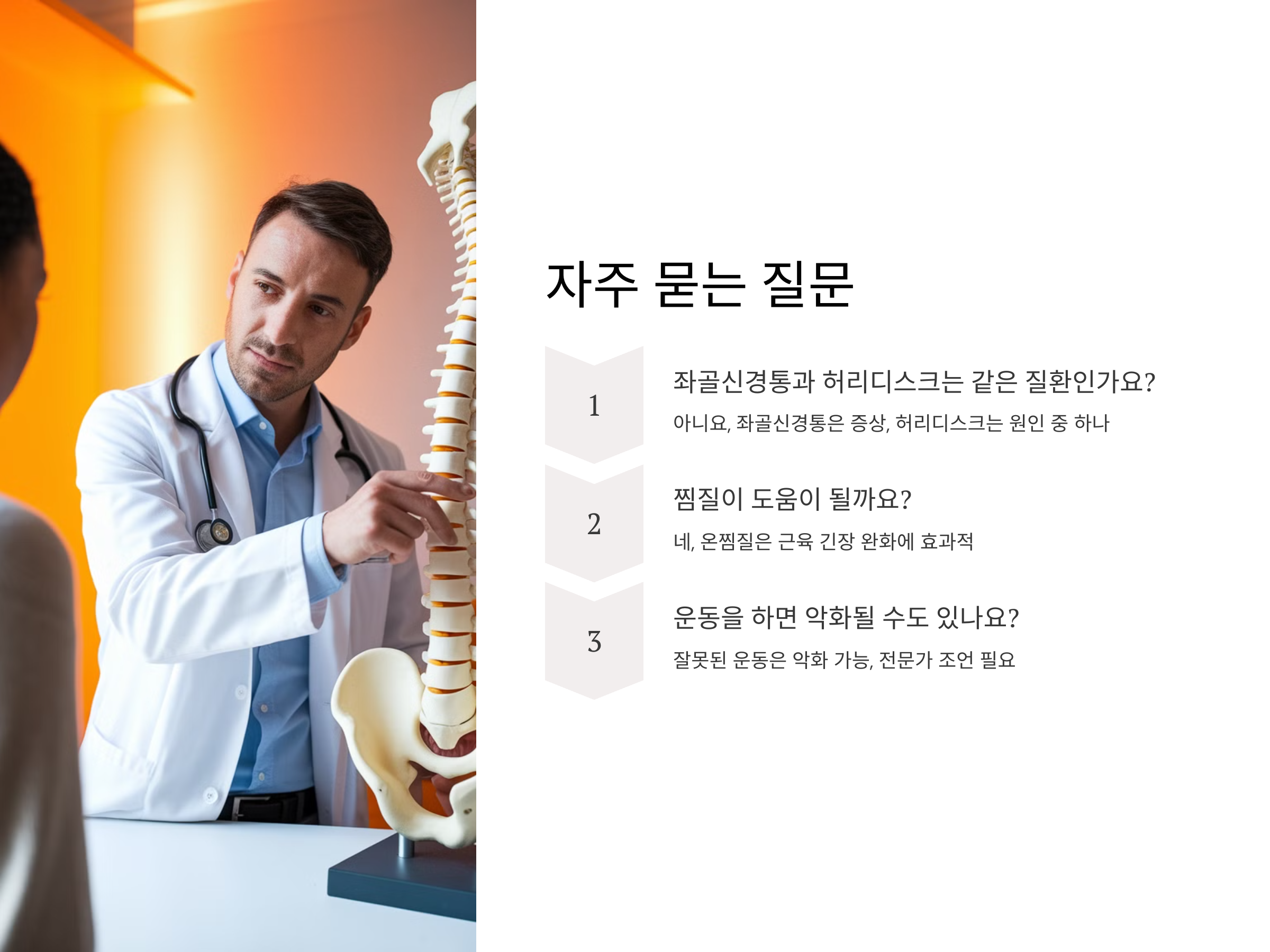 Q1. 좌골신경통과 허리디스크는 같은 질환인가요?