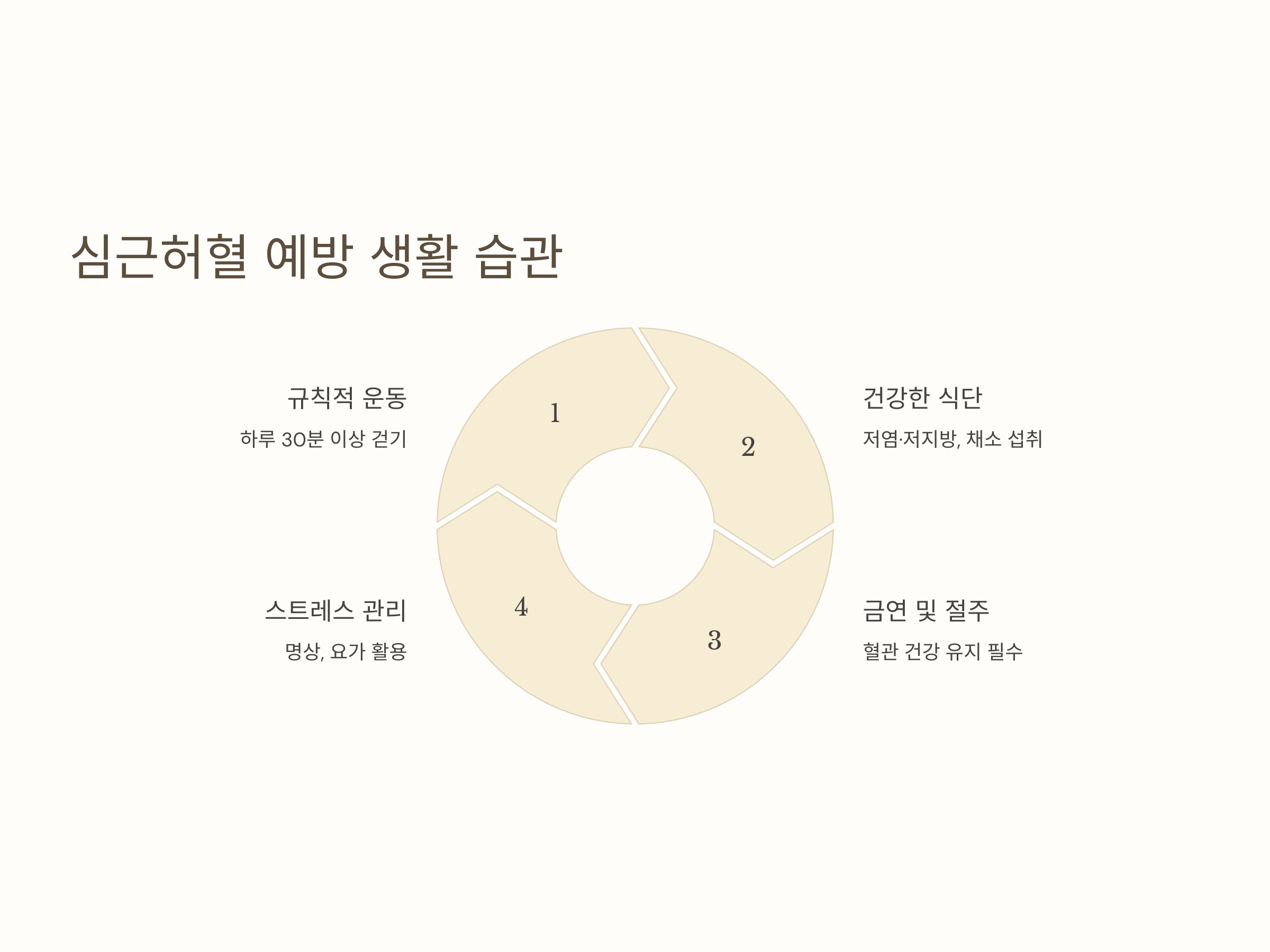 - 생활 습관 개선: 금연, 규칙적인 운동, 저염·저지방 식단 유지