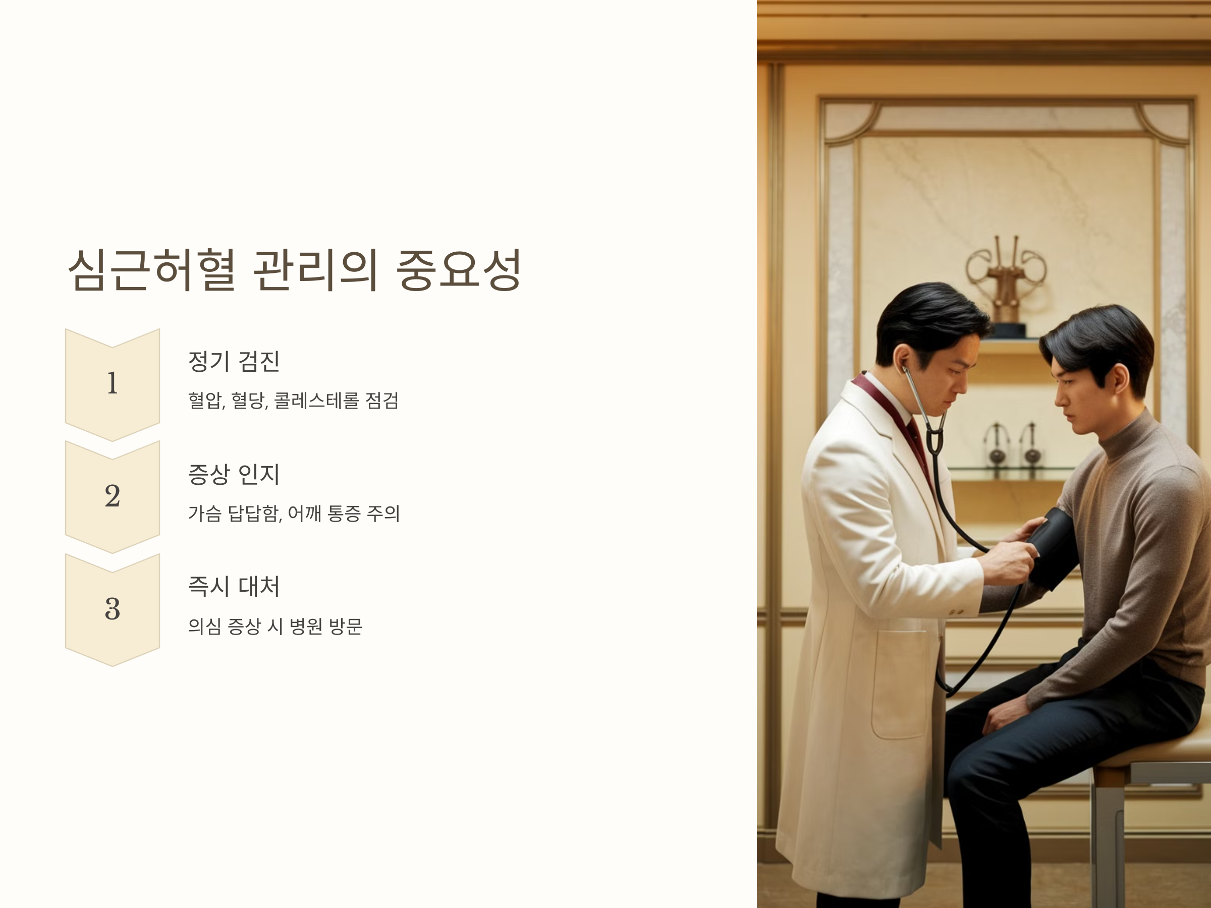 위의 위험 요소가 하나라도 해당된다면 정기적인 건강 검진을 통해 심혈관 상태를 점검하는 것이 중요합니다.