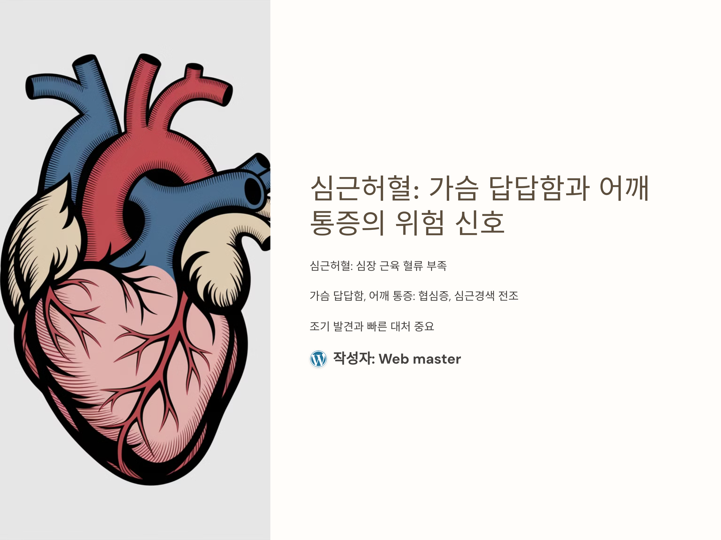 최근 연구에 따르면 심근허혈(심장 근육의 혈류 부족)이 단순한 피로나 스트레스와 혼동될 수 있어 조기 발견이 중요합니다. 특히 가슴 답답함과 어깨 통증이 동반될 경우, 이는 협심증이나 심근경색의 전조 증상일 수 있어 빠른 대처가 필요합니다. 심근허혈의 원인과 증상, 진단 방법, 치료법까지 정확히 알아두어야 생명을 지키는 데 도움이 됩니다.