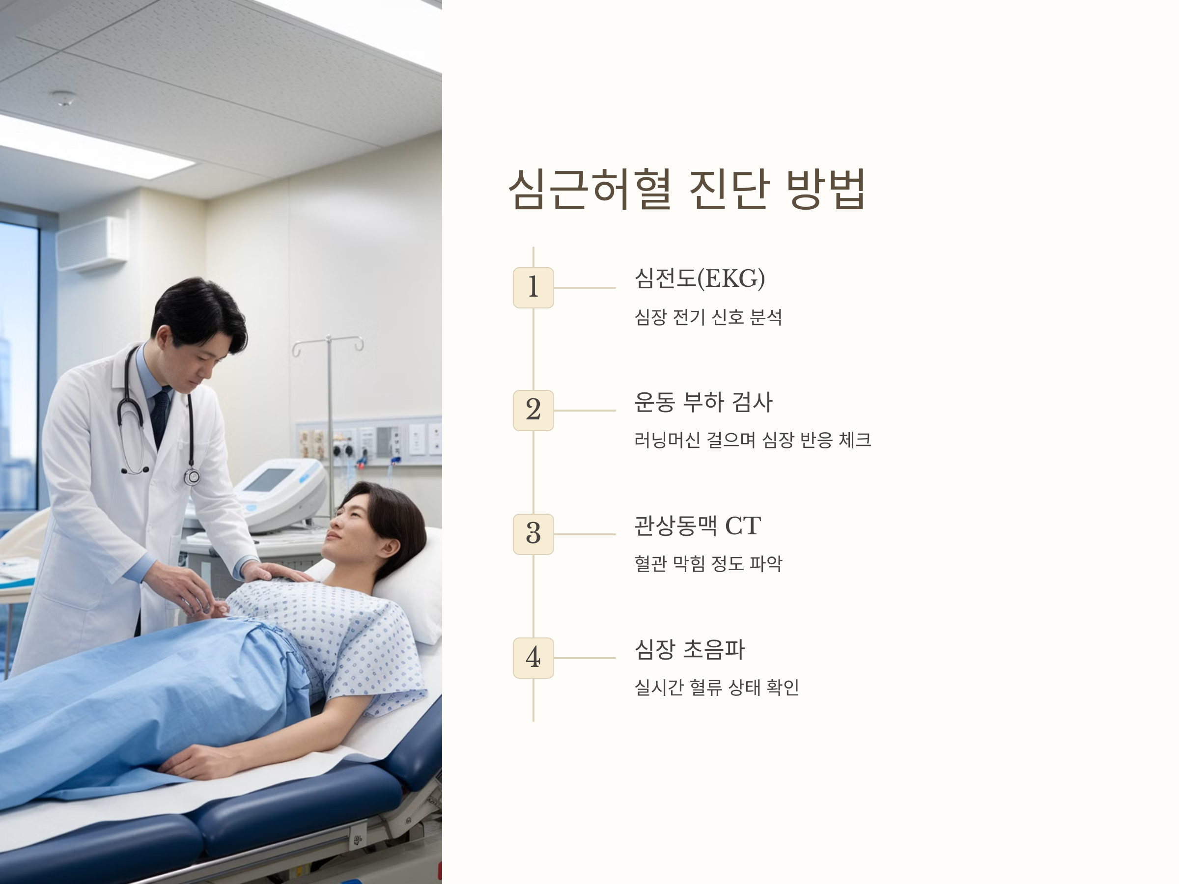 - 혈액 검사: 심장 손상 지표(트로포닌 등)를 체크