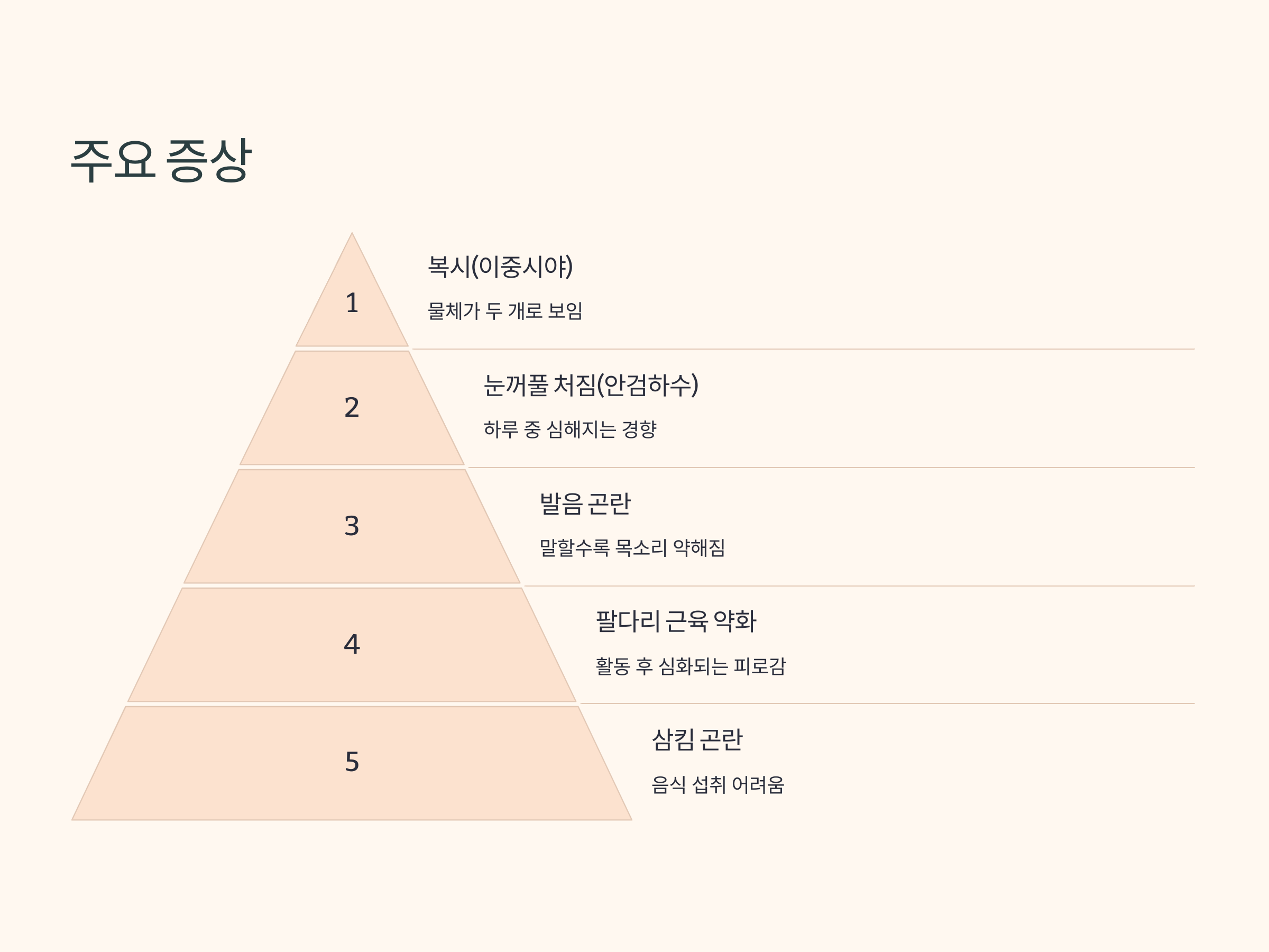 | 추가 증상 | 손 저림, 근력 약화 | 근육 뻣뻣함, 결림 |