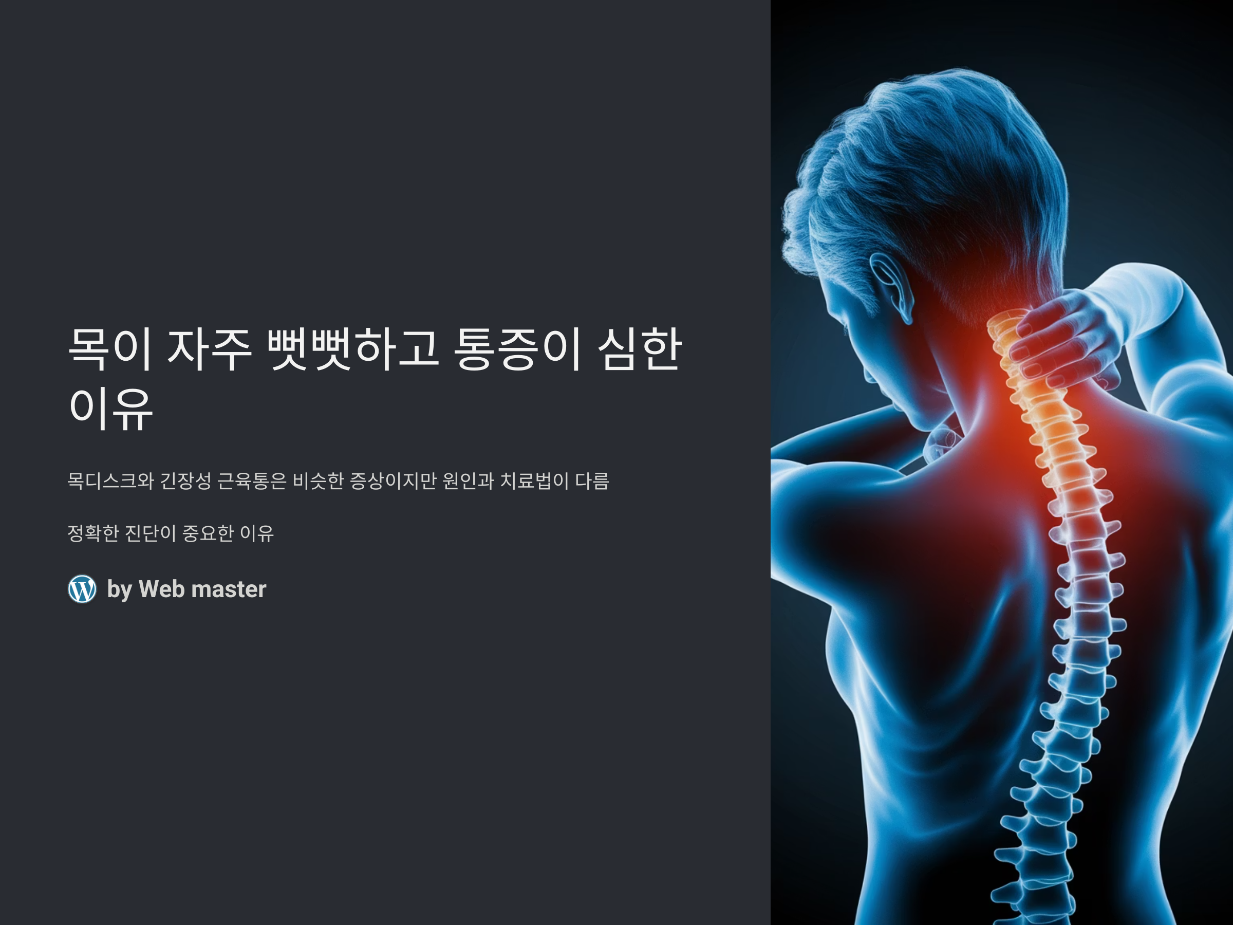 목이 자주 뻣뻣하고 통증이 심한 경우, 그 원인은 다양할 수 있습니다. 대표적인 원인으로는 목디스크와 긴장성 근육통이 있습니다. 이 두 가지 질환은 비슷한 증상으로 나타날 수 있기 때문에 혼동하는 경우가 많습니다. 하지만 그 원인과 치료 방법은 크게 다르기 때문에 정확한 진단이 중요합니다. 이제 목디스크와 긴장성 근육통의 차이점, 원인, 그리고 해결 방법에 대해 자세히 알아보겠습니다.