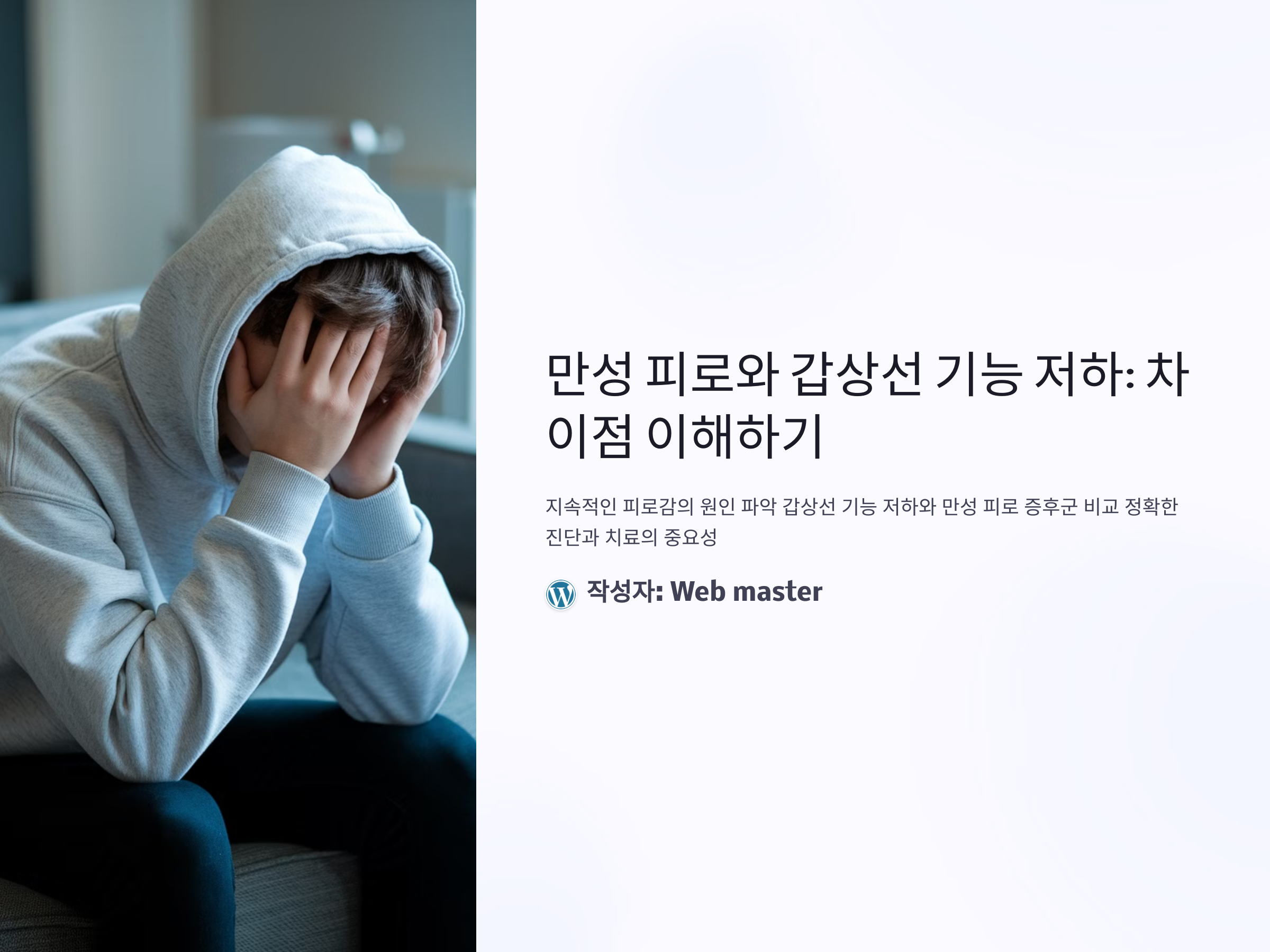 몸이 계속 피곤하고 무기력함을 느끼는 일이 많다면, 이는 단순한 피로나 스트레스의 결과일 수 있지만, 만성 피로 증후군이나 갑상선 기능 저하와 같은 더 심각한 건강 문제의 신호일 수 있습니다. 이러한 증상들은 일상 생활에 큰 영향을 미칠 수 있어, 정확한 원인을 파악하는 것이 매우 중요합니다. 오늘은 만성 피로 증후군과 갑상선 기능 저하를 비교하고, 이 둘을 어떻게 구분할 수 있는지 알아보겠습니다.