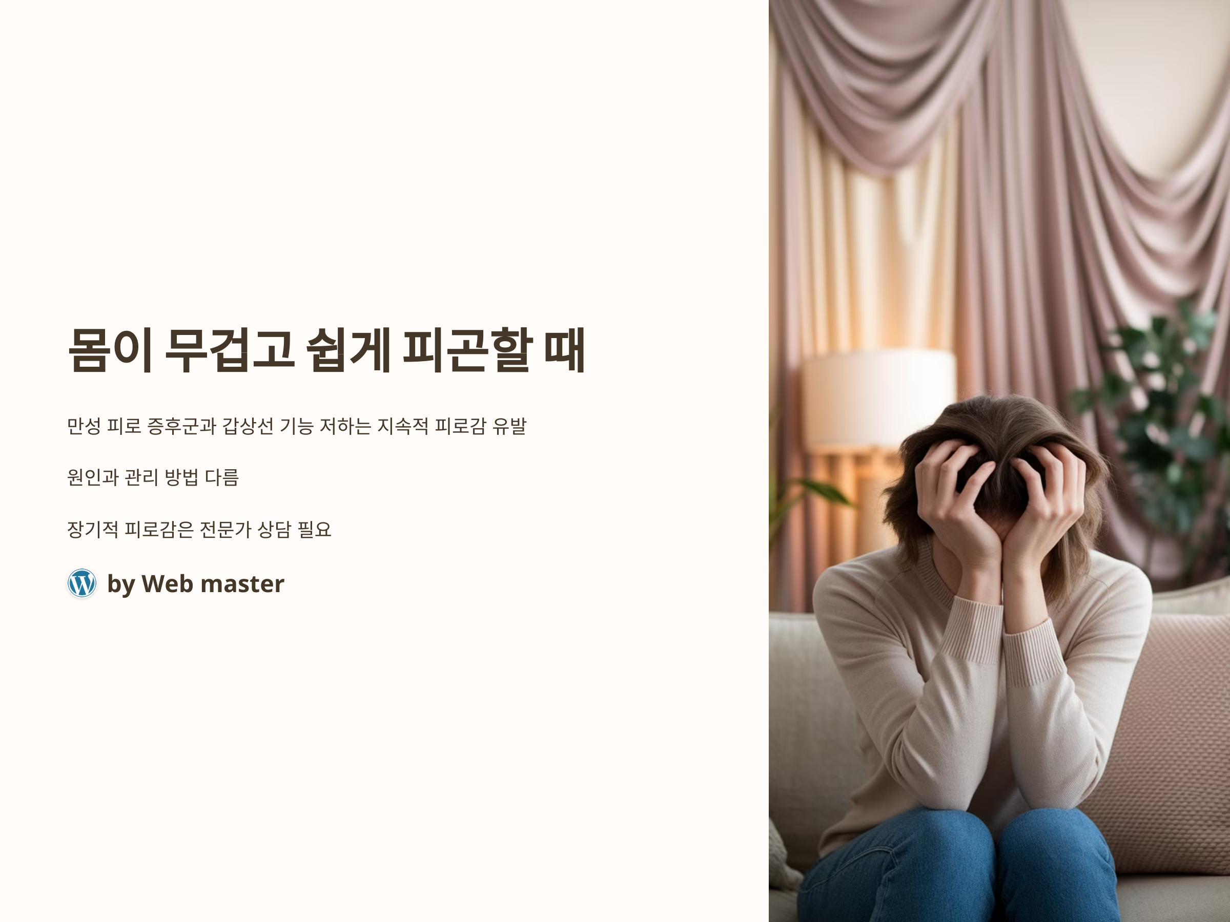 몸이 무겁고 쉽게 피곤한 느낌은 일상적인 스트레스나 과로로 느낄 수 있지만, 이러한 증상이 지속적으로 나타난다면 두 가지 주요 원인을 고려할 수 있습니다. 바로 만성 피로 증후군과 갑상선 기능 저하입니다. 이 두 질환은 피로감을 유발하지만, 원인과 관리 방법은 서로 다릅니다. 본 글에서는 이 두 가지 상태를 비교하고, 예방과 치료 방법을 제시하여 여러분이 건강을 되찾을 수 있도록 돕겠습니다.