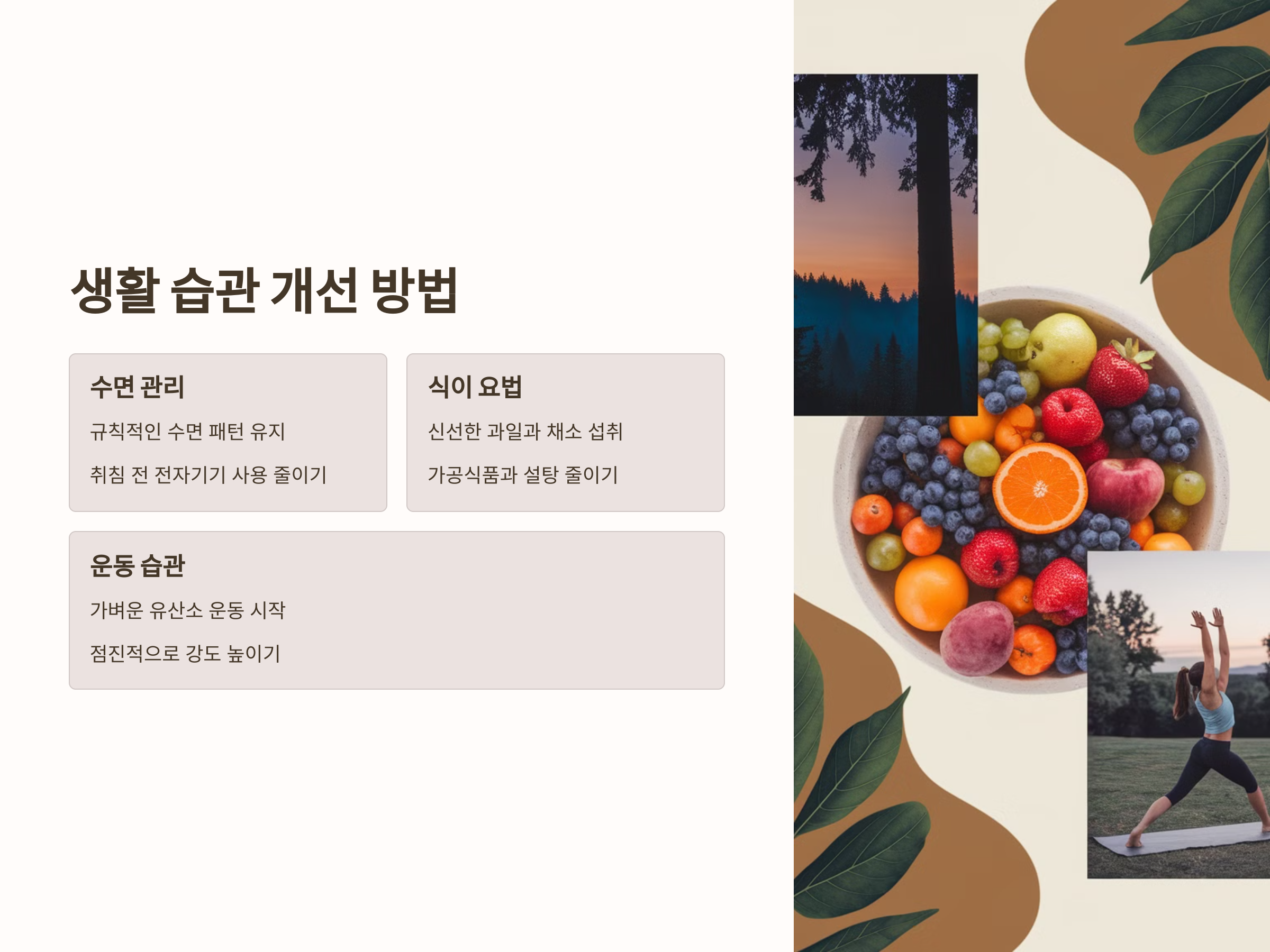 피로감을 느끼는 주된 원인 중 하나는 잘못된 수면 습관입니다. 규칙적인 수면 패턴을 유지하고, 충분한 휴식을 취하는 것이 피로 회복에 중요한 역할을 합니다. 또한, 규칙적인 운동과 균형 잡힌 식단도 만성 피로 증후군 예방에 효과적입니다.