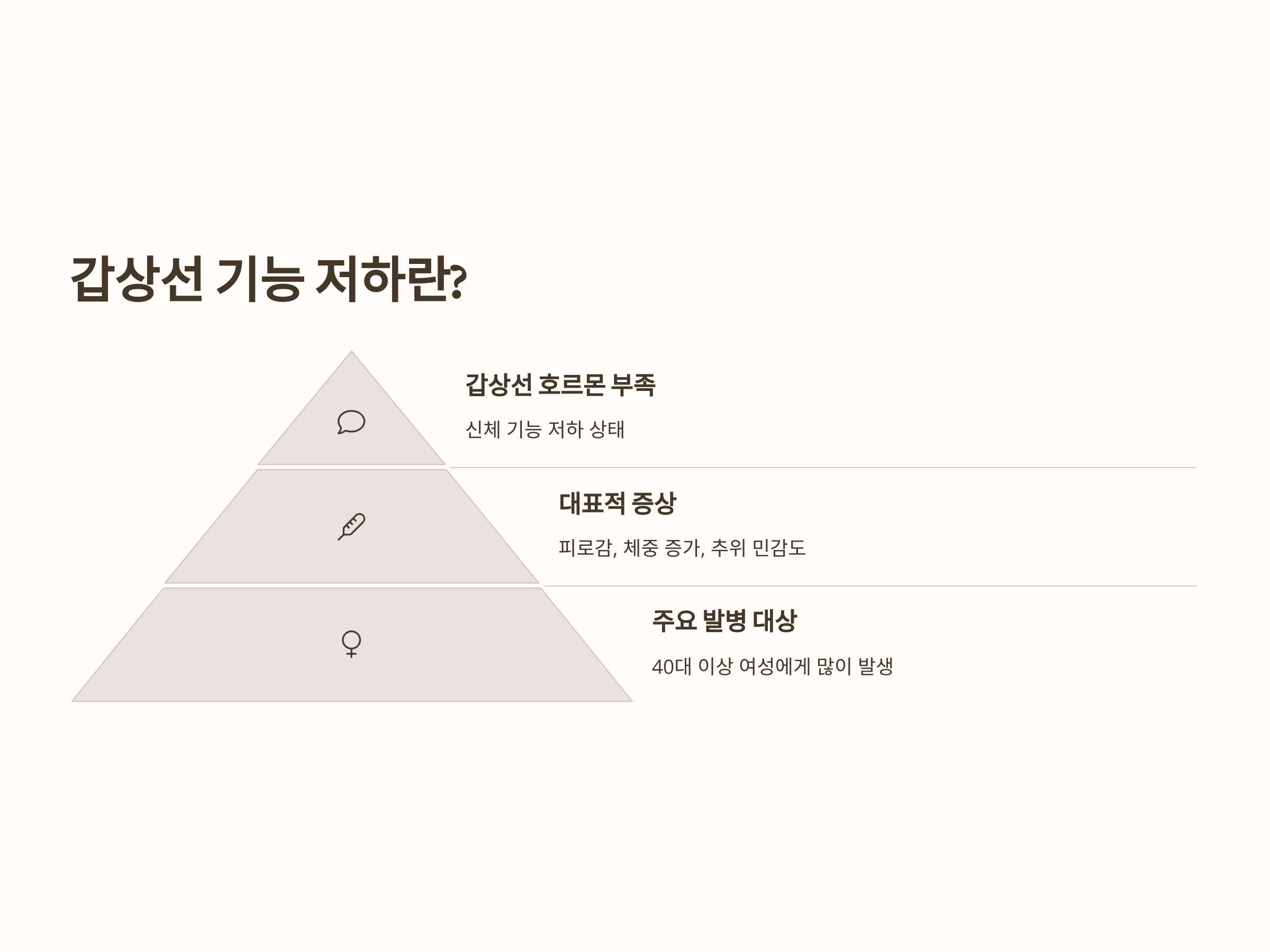 갑상선 기능 저하증은 갑상선 호르몬이 부족해져서 신체 기능이 저하되는 상태를 의미합니다. 갑상선은 우리 몸의 신진대사를 조절하는 중요한 역할을 하는데, 갑상선 호르몬이 부족하면 몸의 여러 기능이 둔화되어 피로감이 발생할 수 있습니다. 갑상선 기능 저하증의 대표적인 증상으로는 피로감, 체중 증가, 추위 민감도 증가, 우울감 등이 있습니다.