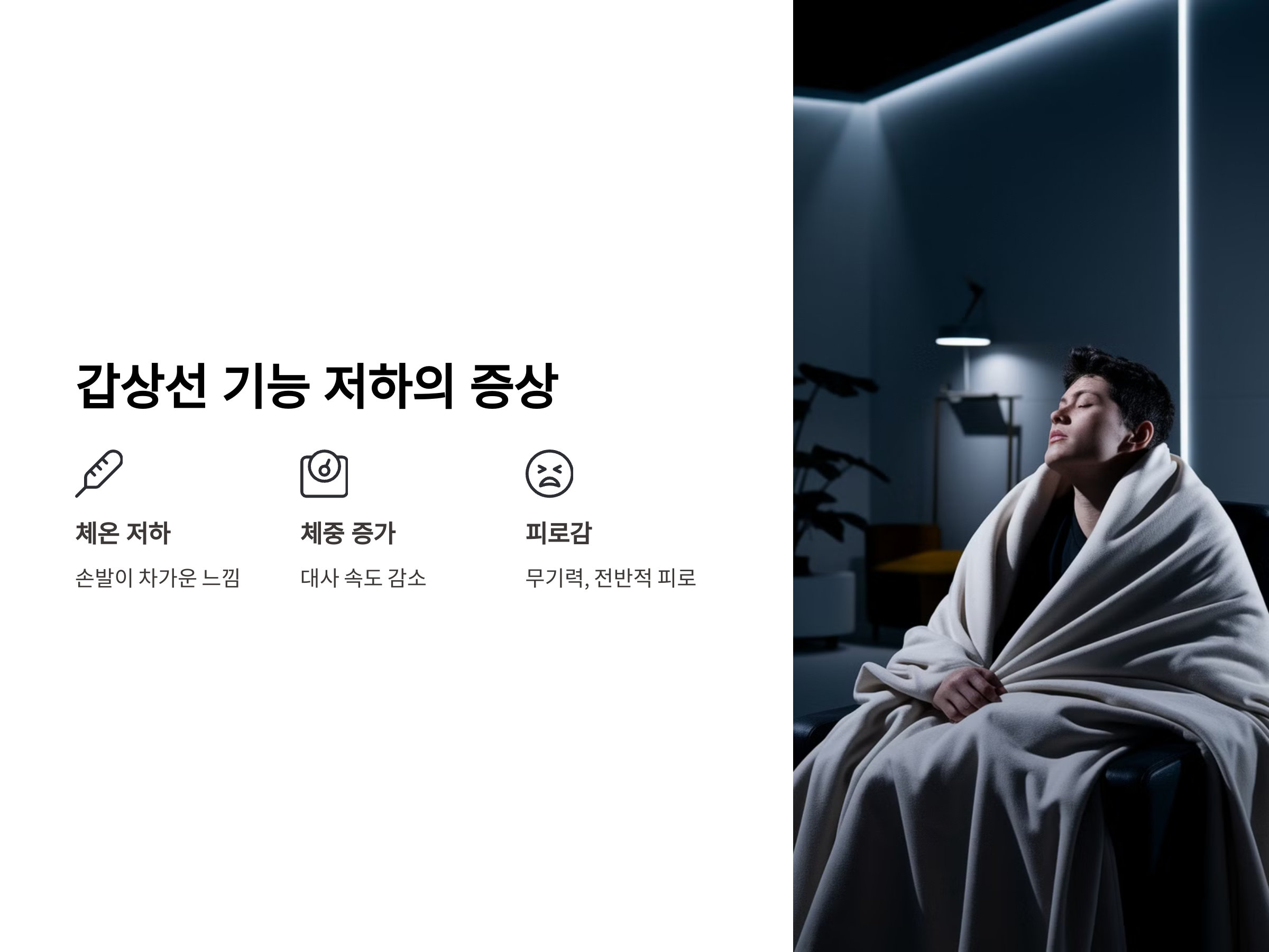 갑상선은 우리 몸의 대사율을 조절하는 중요한 역할을 하는 호르몬인 갑상선 호르몬을 분비합니다. 갑상선 기능이 저하되면 갑상선 호르몬의 분비가 부족해져 대사 속도가 느려지며, 여러 가지 증상이 나타날 수 있습니다. 손발이 차가운 증상은 갑상선 기능 저하의 주요한 징후 중 하나입니다. 갑상선 호르몬이 부족하면 체온 조절이 어려워지고, 이로 인해 체온이 낮아지고 손발이 차가운 느낌을 유발할 수 있습니다.