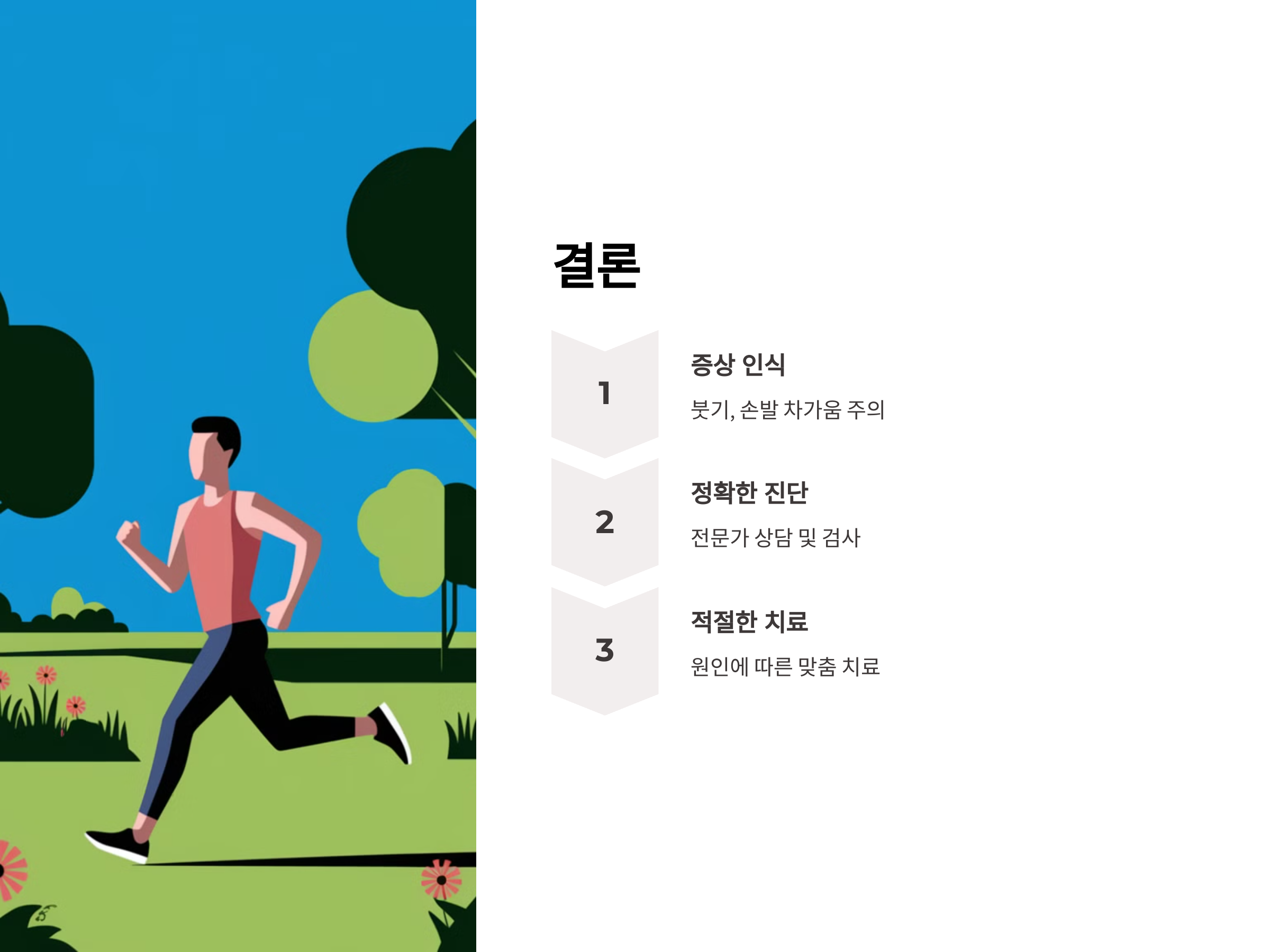 몸이 붓고 손발이 차가운 증상은 신장 기능 저하와 갑상선 기능 저하로 인해 발생할 수 있으며, 각자의 치료 방법이 필요합니다. 적절한 검사를 통해 정확한 원인을 파악하고, 적시에 치료를 받는 것이 중요합니다. 자신의 건강을 지키기 위해서는 주기적인 건강 검진과 함께, 몸의 작은 변화도 놓치지 않고 살피는 것이 필요합니다.