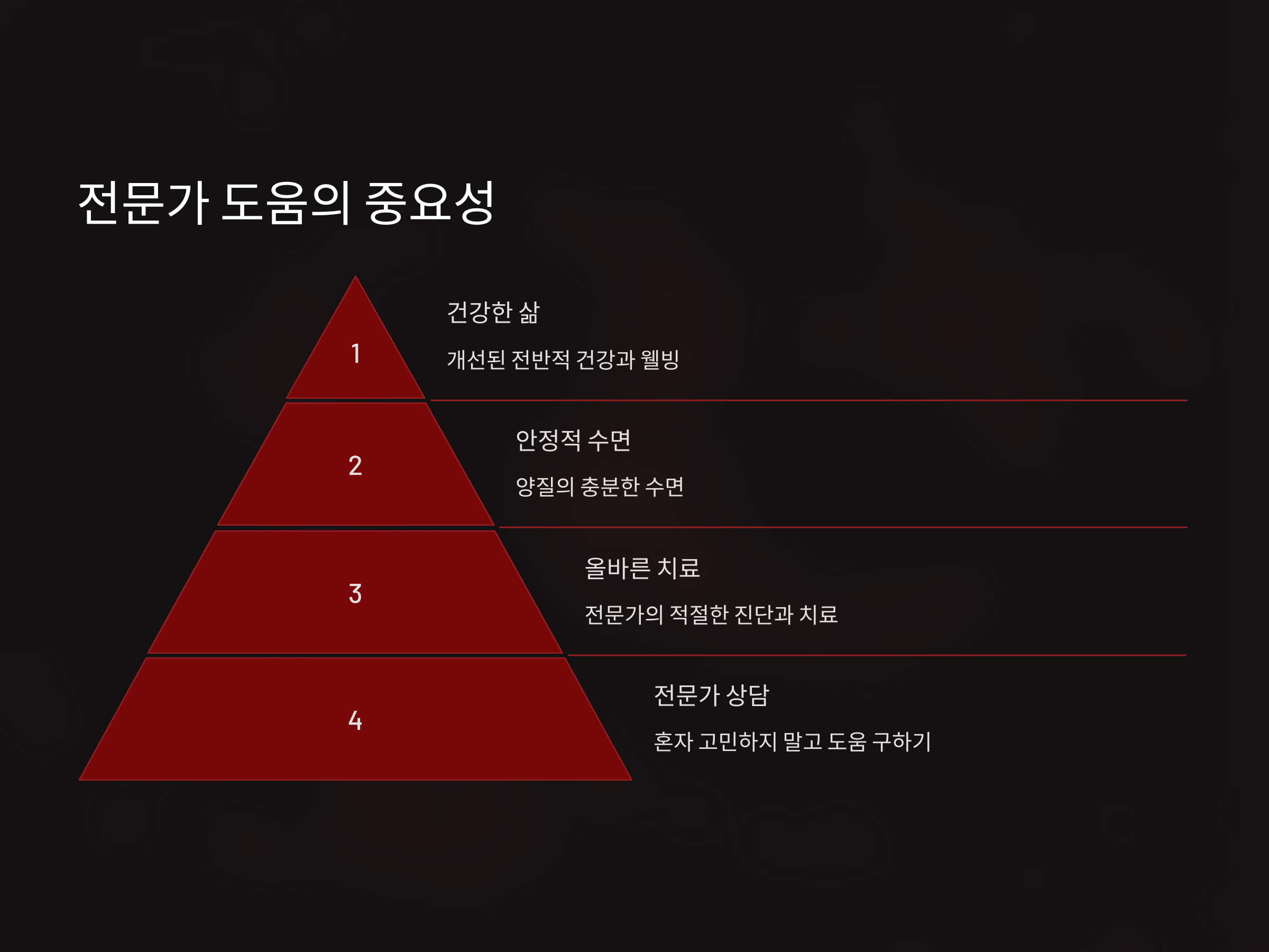 - 스트레스와 불안 관리: 일상에서의 스트레스를 줄이고 편안한 마음을 유지하는 것이 중요합니다. 운동이나 명상, 취미 활동 등을 통해 스트레스를 해소할 수 있습니다.