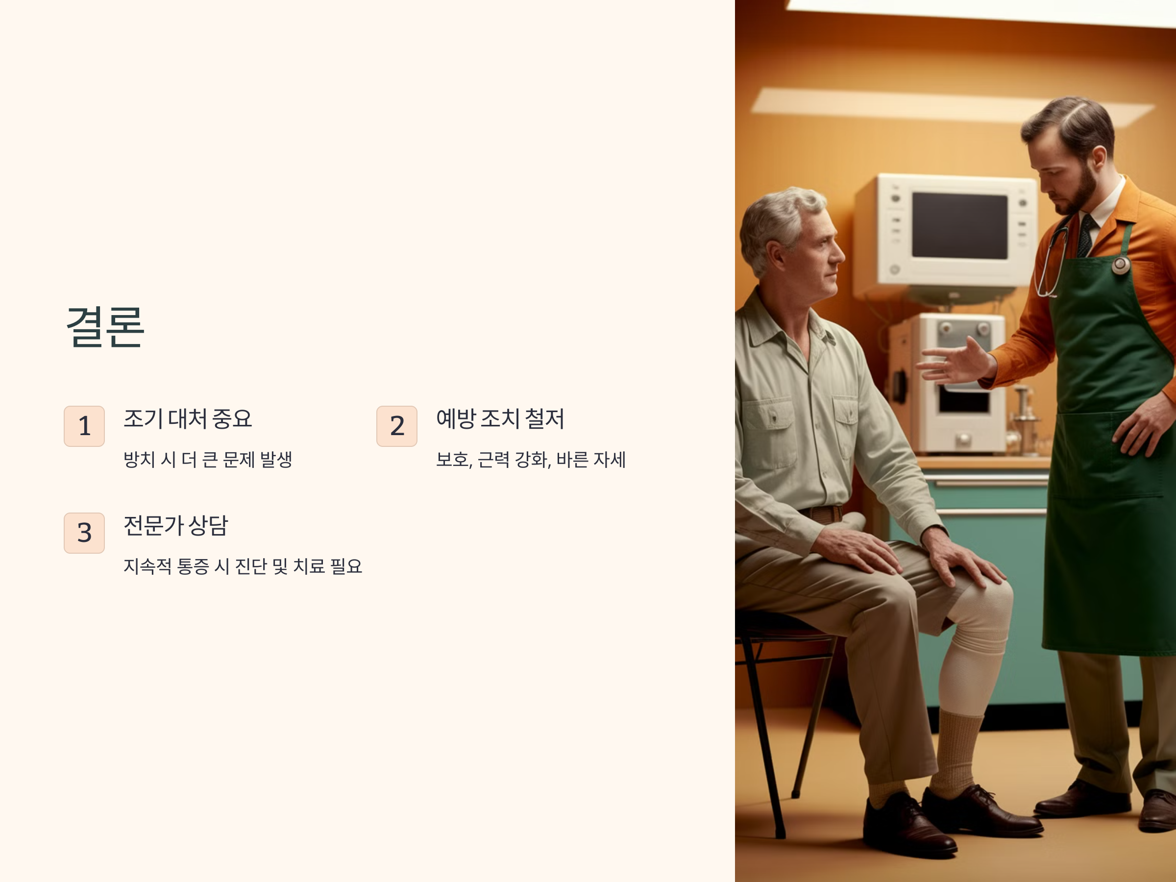 무릎 반월판 손상은 계단을 오를 때 심한 통증을 유발할 수 있으며, 이를 방치하면 더 큰 문제로 이어질 수 있습니다. 따라서 무릎 보호, 근력 강화, 바른 자세 유지 등의 예방 조치를 철저히 해야 합니다. 만약 지속적인 통증이 있다면 전문가의 진단을 받고 적절한 치료를 받는 것이 중요합니다.