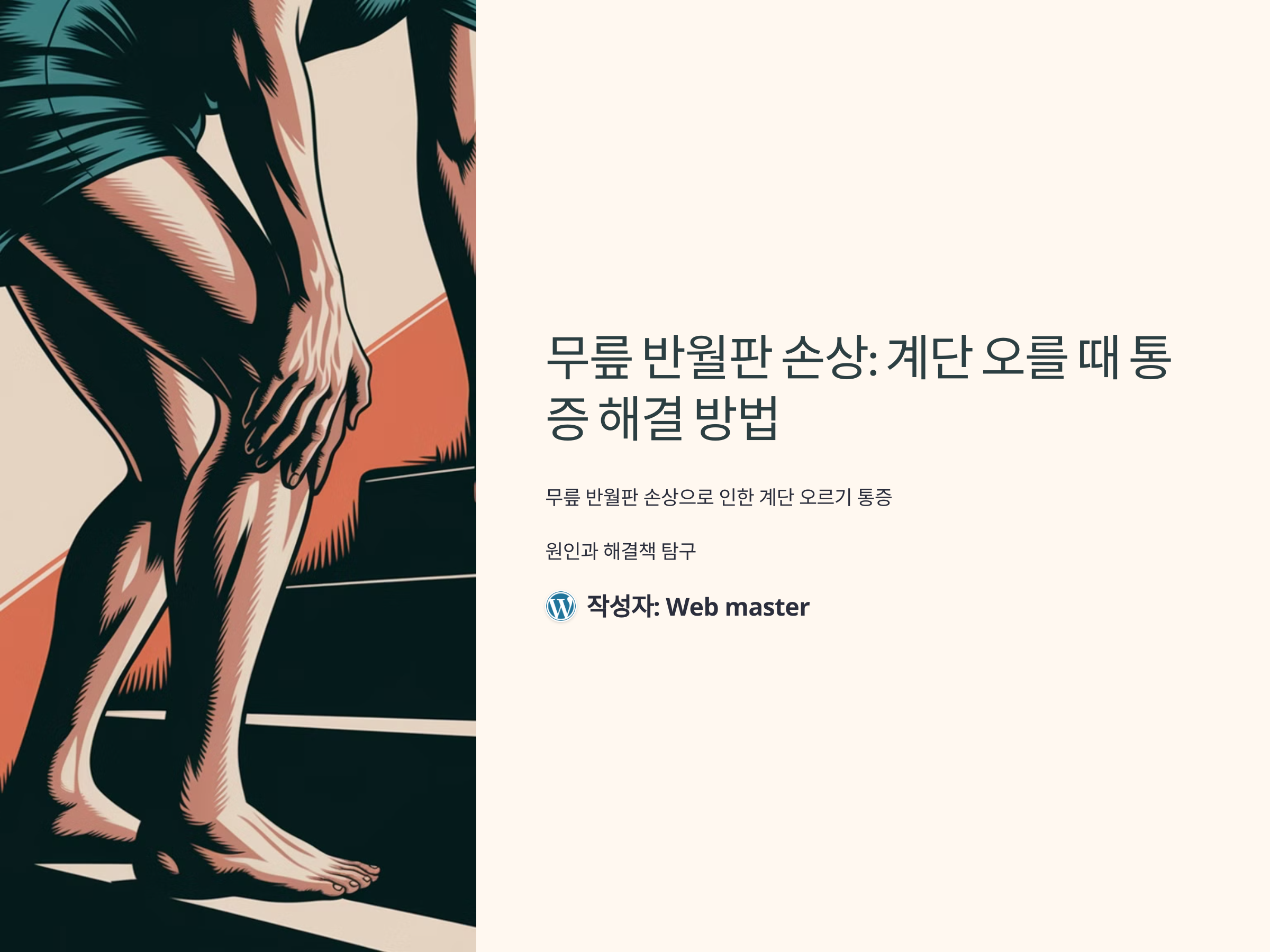반월판이 손상되면 무릎 관절 내에서 염증이 생기고, 이로 인해 부종 및 통증이 발생할 수 있습니다. 특히 계단을 오를 때는 체중이 무릎에 실리면서 통증이 더욱 심해질 수 있습니다.