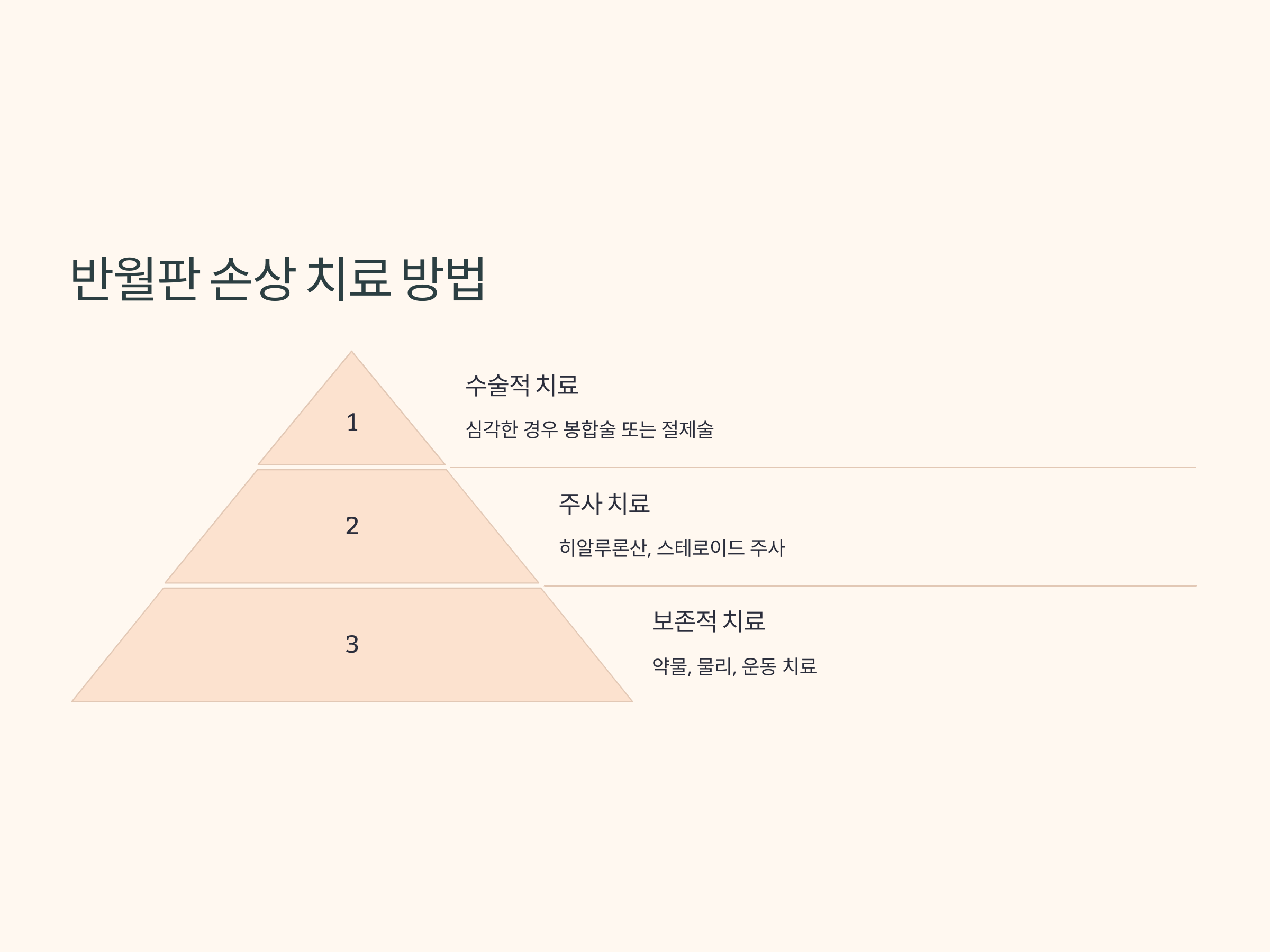 심한 경우에는 관절내시경을 이용한 반월판 봉합술이나 절제술이 필요할 수 있습니다.
