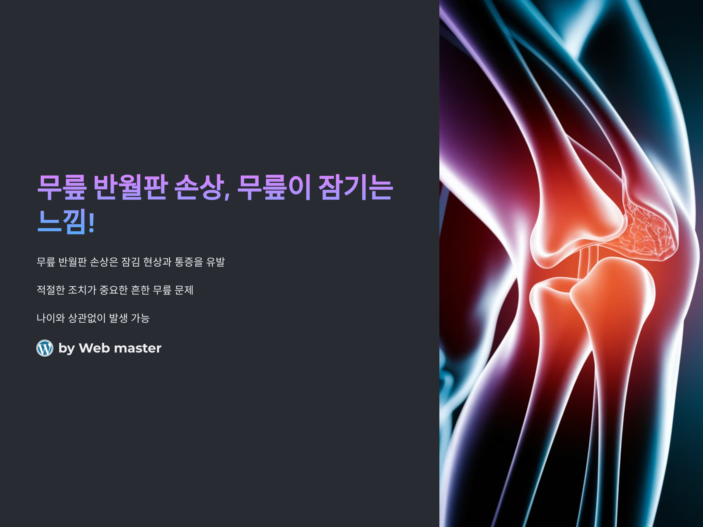 자세히 알아보기 공식 가이드 확인하기 통증 완화 방법 알아보기 무릎 건강 관리법 반월판 손상 치료법