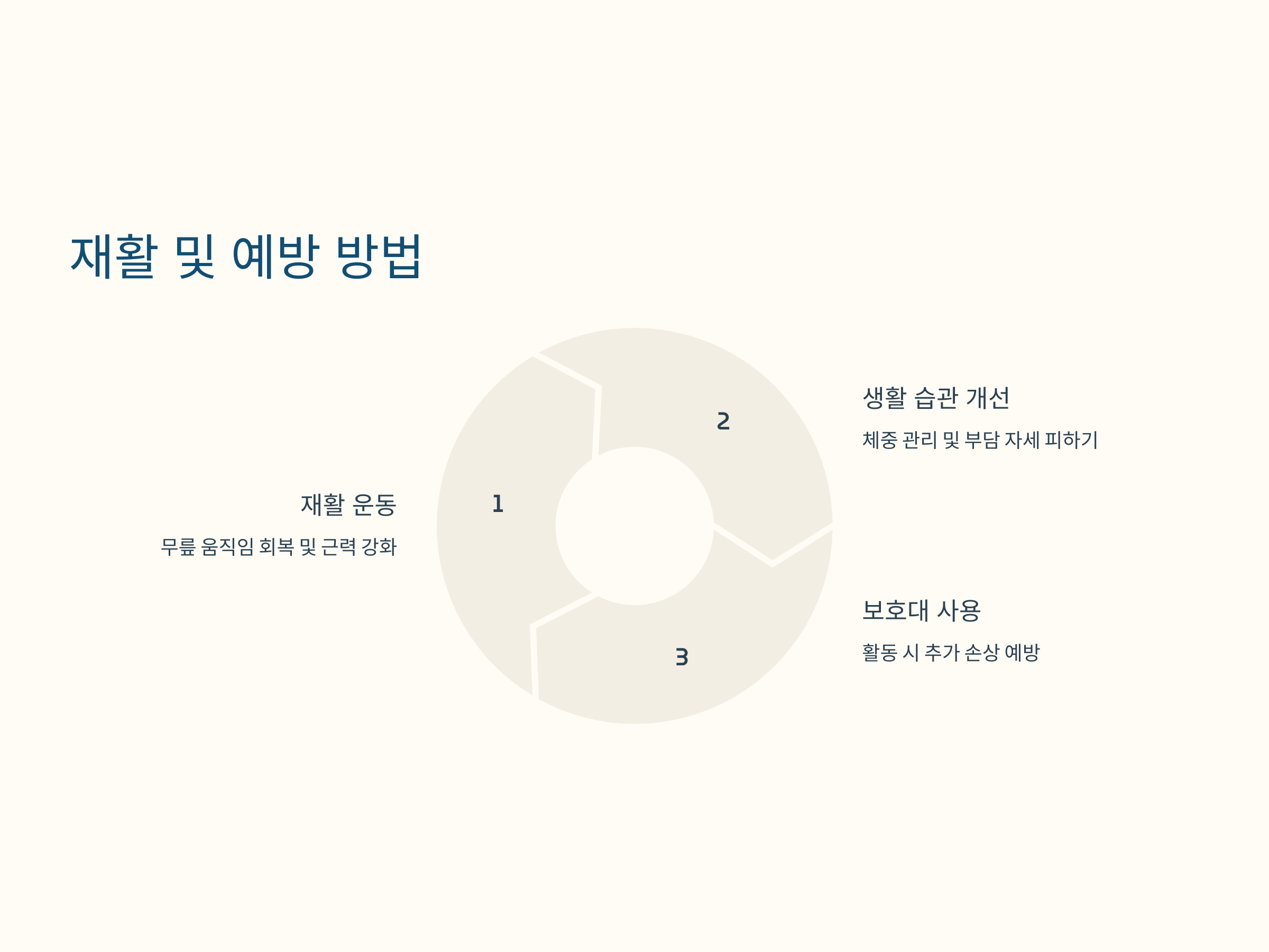 치료 후 재활과 예방은 무릎의 기능 회복과 재발 방지에 중요한 역할을 합니다: