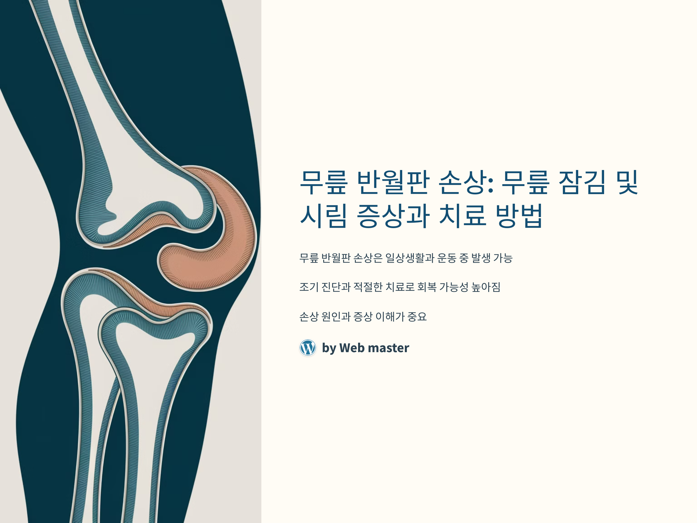 무릎 반월판 손상은 일상생활과 운동 중 무릎에 가해지는 부하로 인해 발생할 수 있으며, 특히 무릎의 잠김 현상과 시림 증상으로 많은 불편을 초래합니다. 이러한 증상은 무릎 관절의 기능 저하와 통증을 유발하여 삶의 질을 크게 떨어뜨릴 수 있습니다. 최근 연구에 따르면, 무릎 반월판 손상은 조기 진단과 적절한 치료를 통해 회복 가능성이 높아지고, 재발을 예방할 수 있습니다. 따라서 무릎 건강을 유지하기 위해서는 손상의 원인과 증상을 정확히 이해하고, 적절한 치료와 예방 방법을 숙지하는 것이 중요합니다.