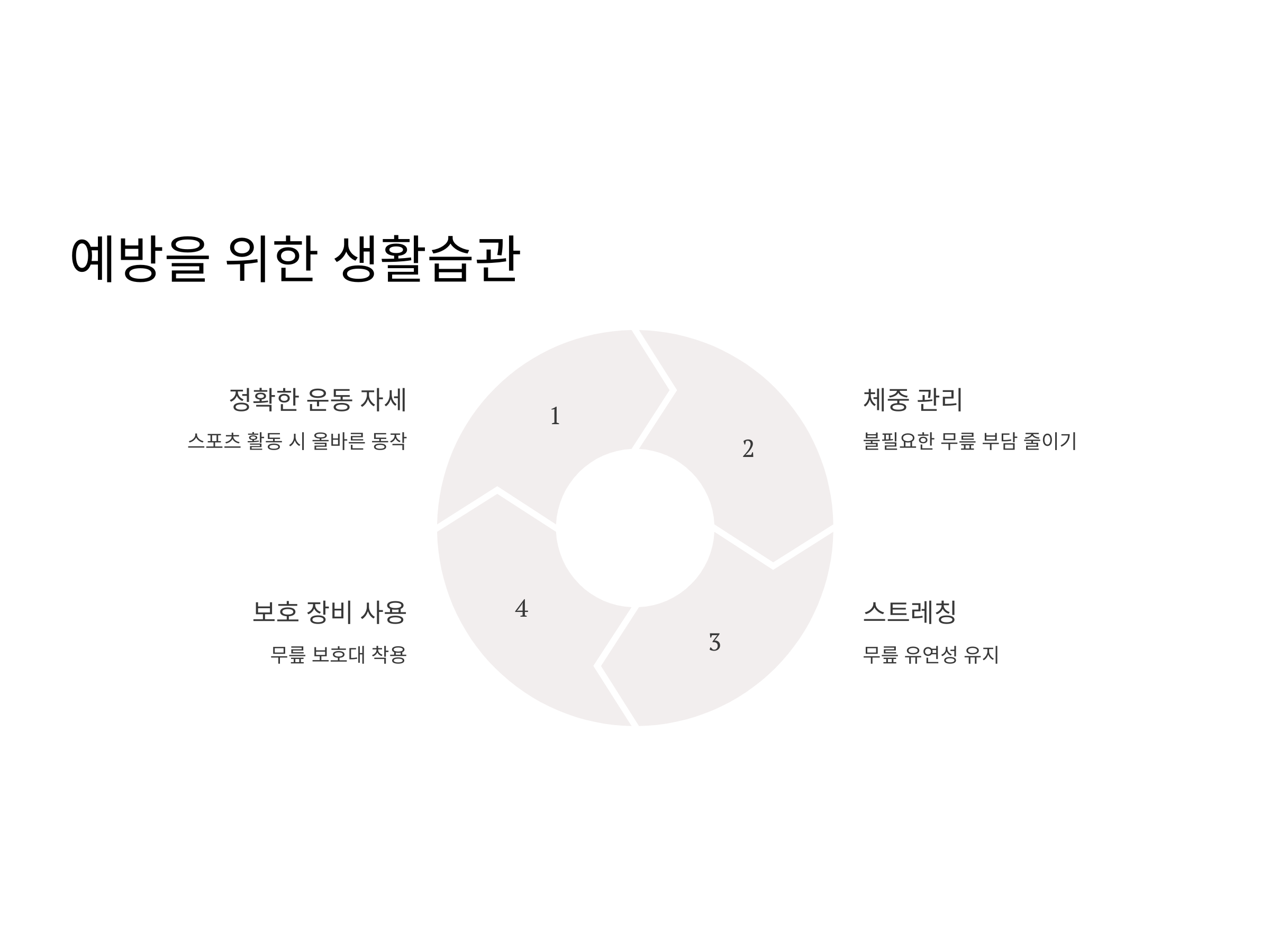 수술 후 재활은 더 철저하게 이루어져야 합니다. 무릎 주변 근육을 강화하고, 운동 범위를 넓혀가며 균형 훈련을 포함시켜야 합니다. 이를 통해 무릎의 기능을 회복하고, 운동 중 무릎에 가해지는 압력을 줄일 수 있습니다. 전문가의 지시에 따라 적절한 재활 계획을 세우고, 무리하지 않도록 주의해야 합니다.