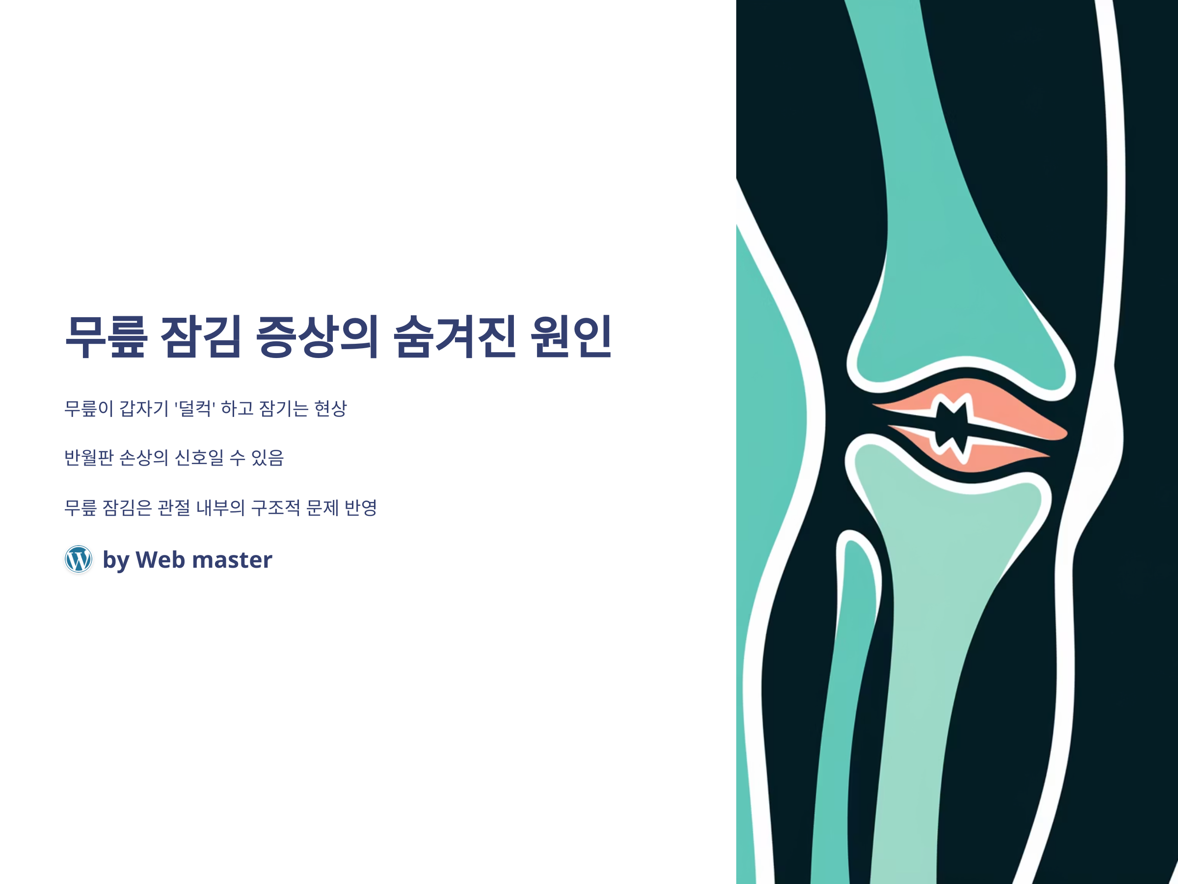무릎이 갑자기 '덜컥' 하고 잠기면서 펴지지 않는 경험을 한 적이 있나요? 많은 사람들이 순간적인 증상으로 생각하고 넘기기 쉬운 이 현상은 사실 심각한 반월판 손상의 신호일 수 있습니다. 특히 2024년 이후부터 스포츠 활동 증가와 재활운동 관심도가 높아지면서 반월판 손상 및 관련 질환이 증가하고 있다는 분석도 나오고 있습니다. 무릎 잠김은 단순한 증상이 아닌 관절 내부의 구조적 문제를 반영하는 신호로, 정확한 원인 파악과 적절한 조치를 통해 장기적인 무릎 건강을 지킬 수 있습니다.
