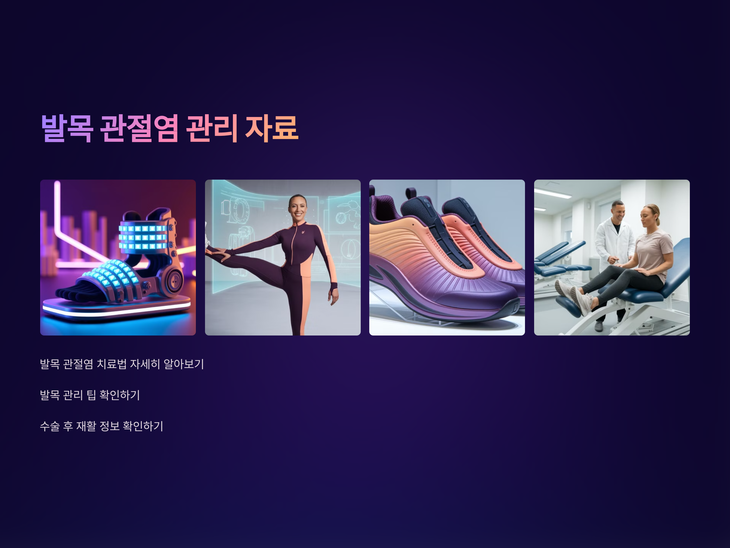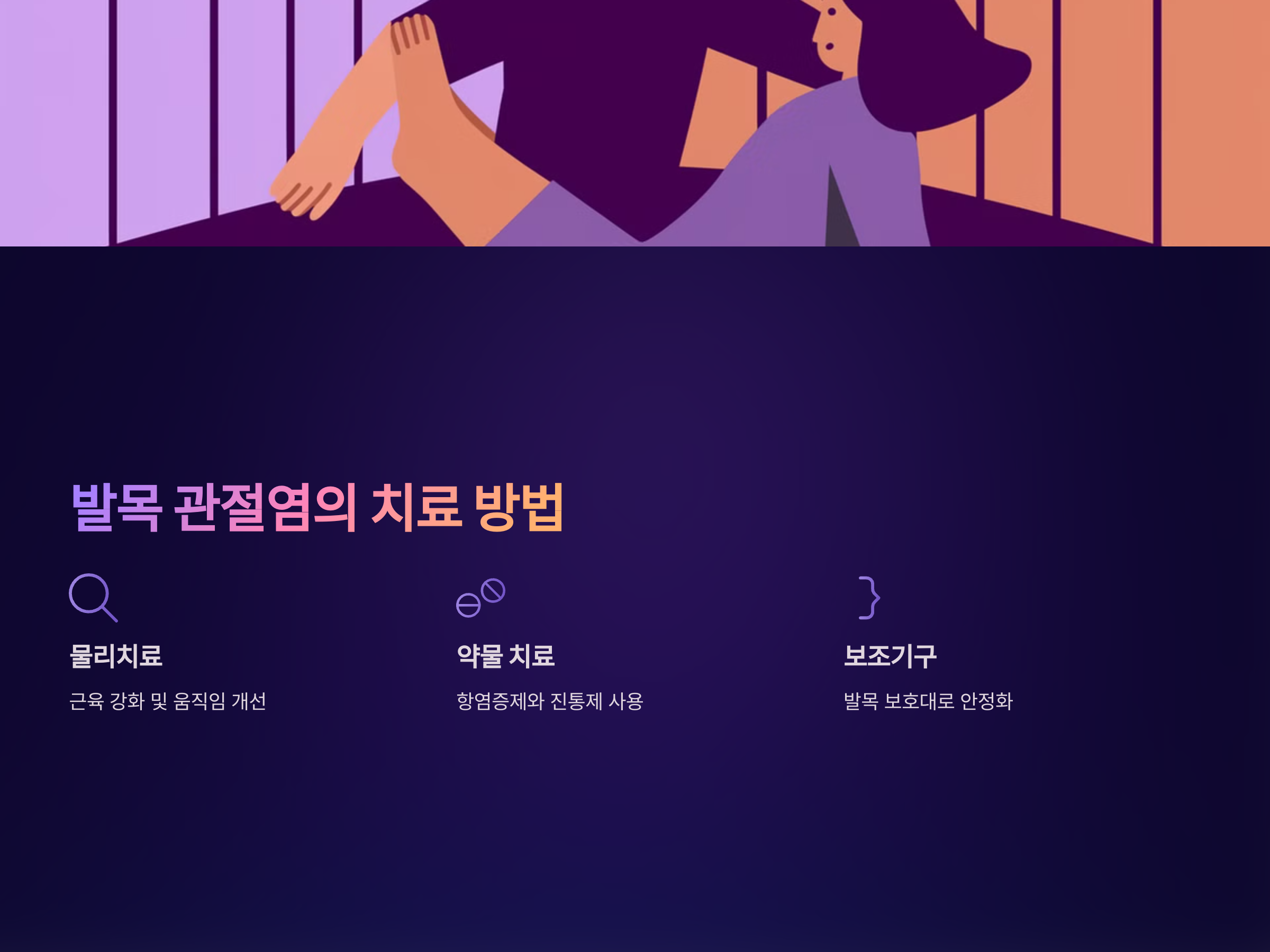 발목 관절염 치료법 자세히 알아보기발목 관리 팁 확인하기 수술 후 재활 정보 확인하기