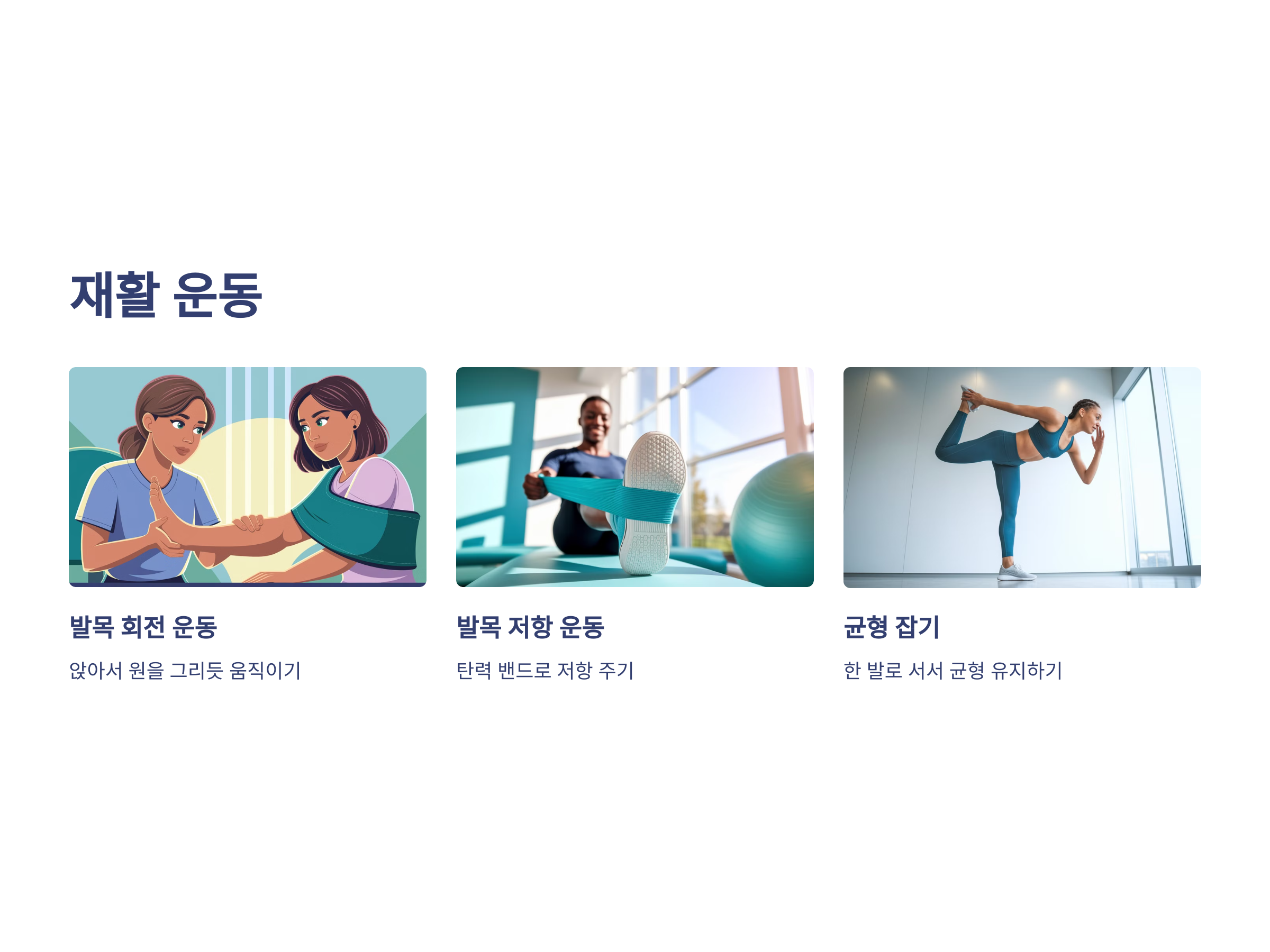 초기 치료가 끝난 후에는 점진적인 재활 운동을 통해 발목을 강화하는 것이 중요합니다.