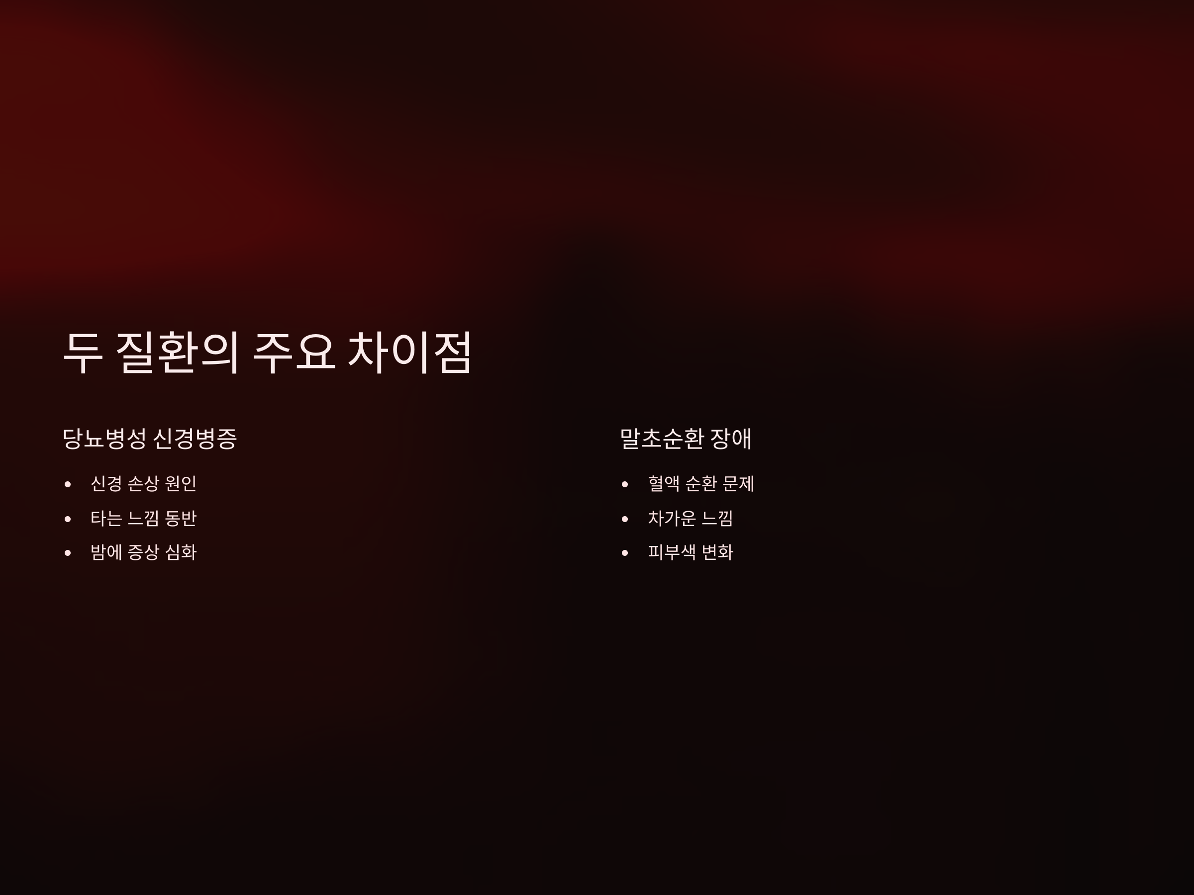 당뇨병성 신경병증과 말초순환 장애의 주요 차이점