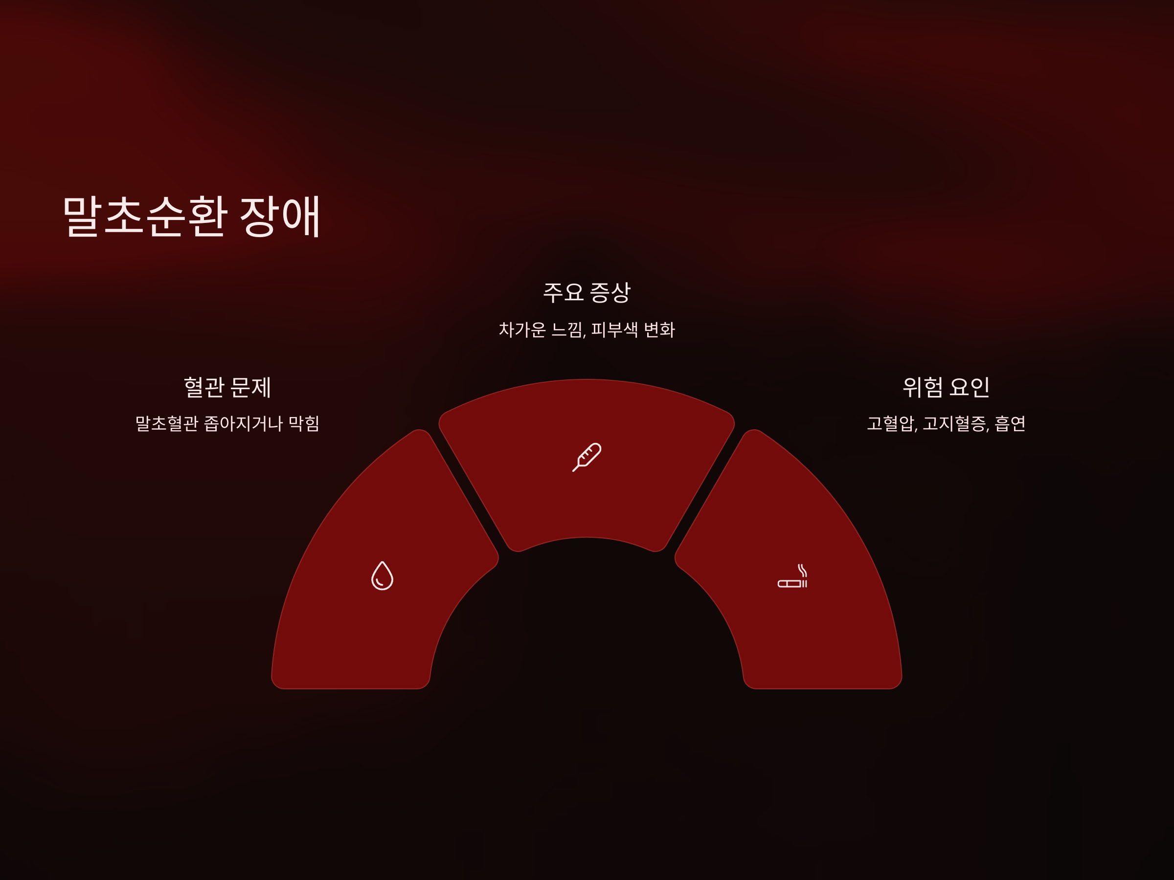 말초순환 장애는 말초혈관이 좁아지거나 막혀서 혈액 순환에 문제가 생기는 질환을 말합니다. 이로 인해 발이나 다리 등 말초 부위에 혈액이 제대로 공급되지 않으면 발바닥에 따끔거림, 저림, 차가운 느낌 등이 나타날 수 있습니다. 특히, 말초순환 장애가 있는 사람은 발끝이나 발바닥의 피부색이 창백하거나, 차가운 느낌이 들 수 있으며, 움직일 때 피로감이 쉽게 느껴질 수 있습니다.