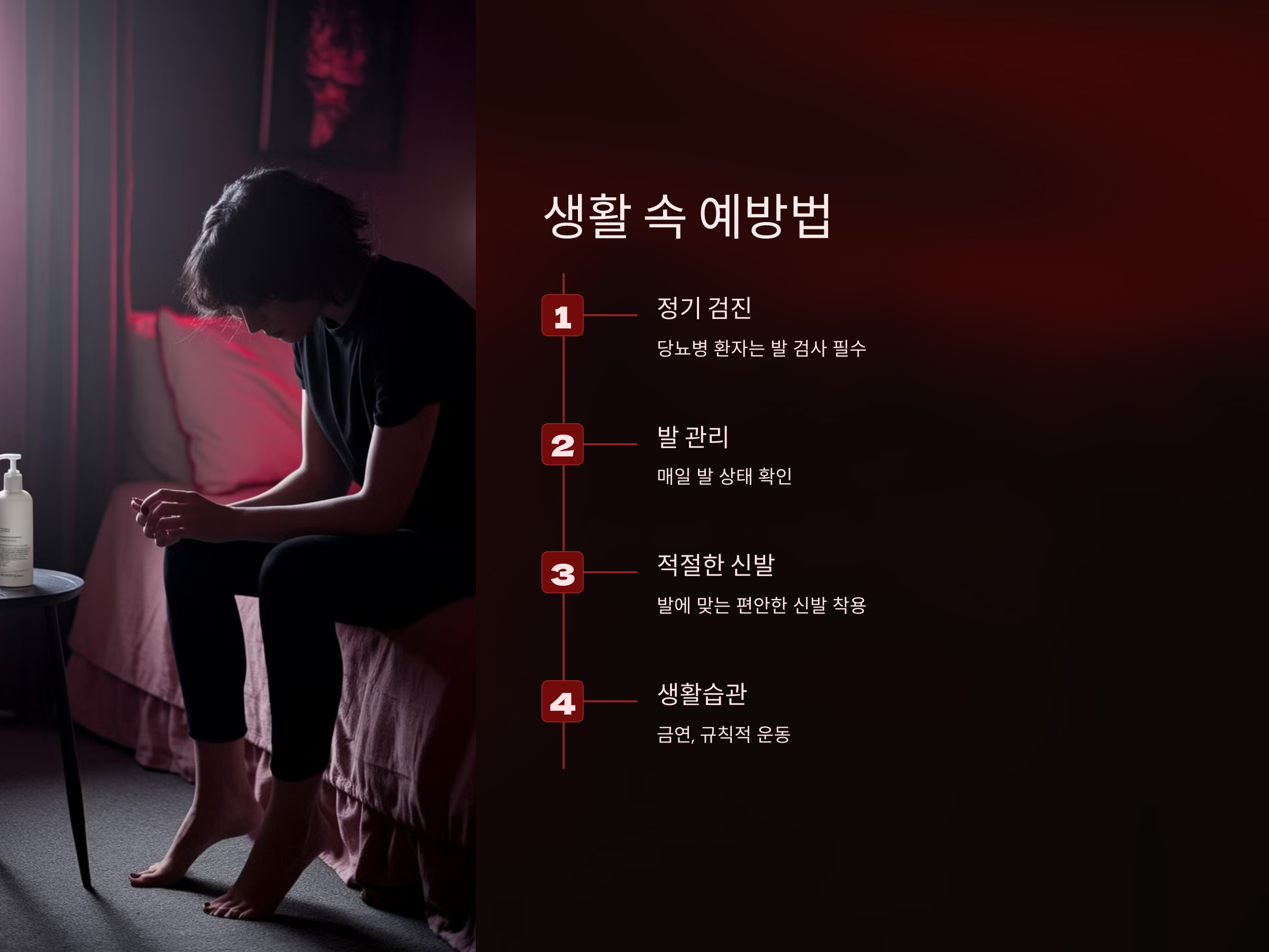 발바닥의 따끔거림과 저린 느낌은 단순히 피로로 인한 증상일 수도 있지만, 지속적으로 나타난다면 다른 심각한 건강 문제를 의심할 필요가 있습니다. 특히 당뇨병을 앓고 있거나 평소 혈액순환에 문제가 있었다면, 이 두 가지 질환의 가능성을 염두에 두고 정확한 진단을 받는 것이 중요합니다. 그럼, 당뇨병성 신경병증과 말초순환 장애가 어떤 차이점이 있는지, 그리고 증상을 어떻게 구별할 수 있는지 자세히 알아보겠습니다.