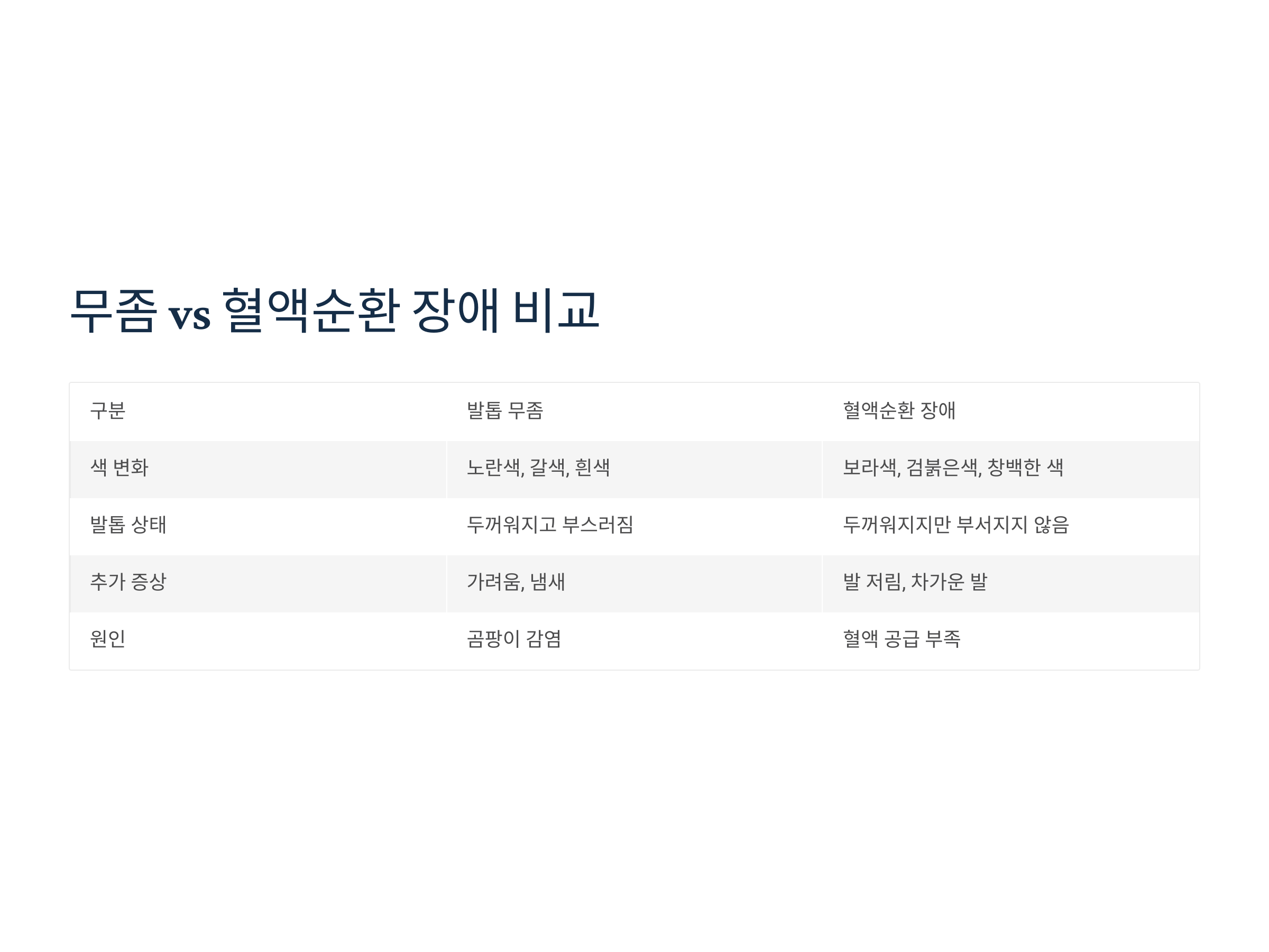 발톱 무좀 vs 혈액순환 장애 비교표