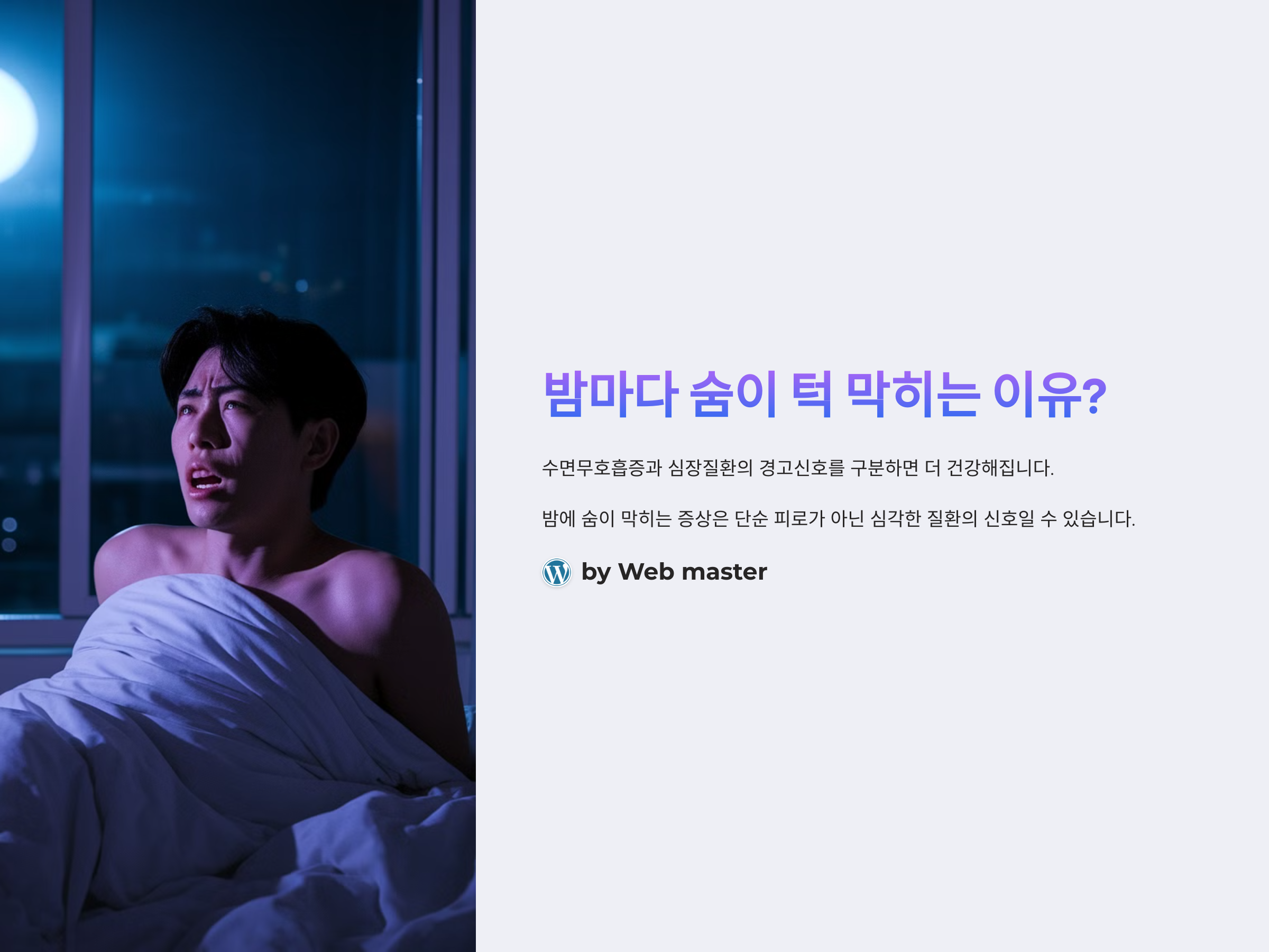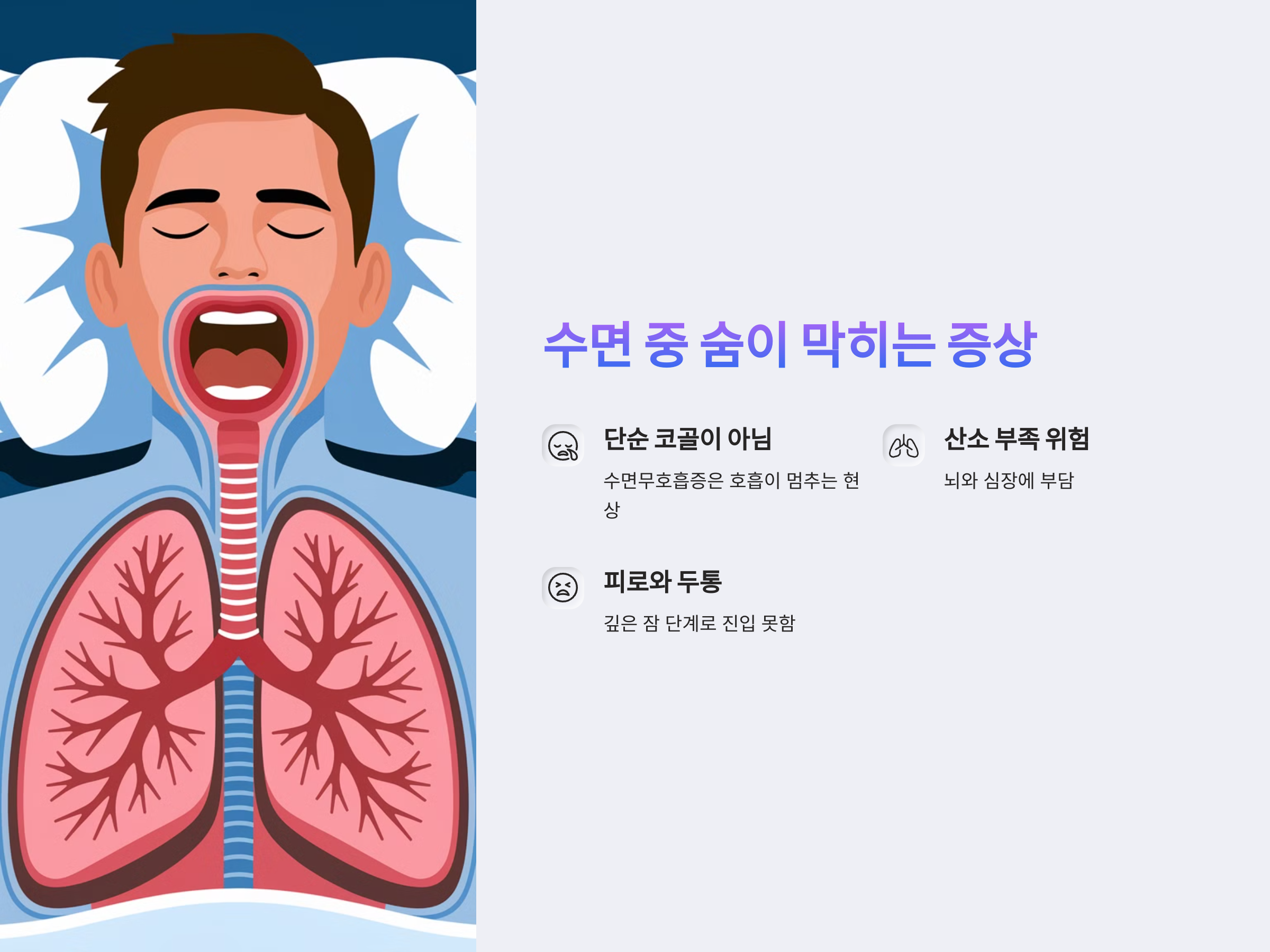 밤마다 숨이 막히는 증상은 절대 가볍게 넘겨서는 안 됩니다. 수면무호흡증이든 심장질환이든, 우리 몸이 보내는 위급 신호일 수 있습니다. 가장 중요한 것은 원인을 명확하게 파악하고 적절한 진료와 생활습관 개선을 통해 위험을 사전에 차단하는 것입니다.