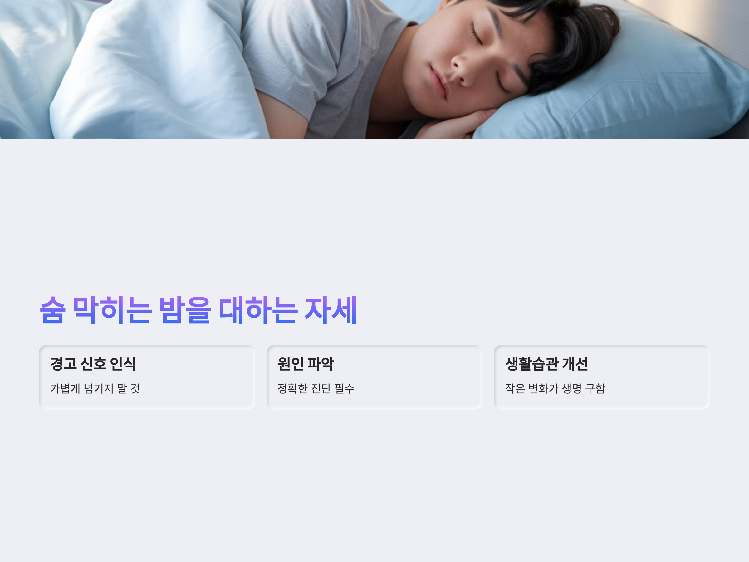 이 글을 읽은 지금, 스스로의 수면 상태를 점검해보세요. 자다가 깨어나거나, 심한 코골이, 아침 두통, 극심한 피로가 있다면 지금이 바로 진단받을 시점입니다. 이 작은 관심 하나가 생명을 바꿀 수도 있습니다. 당신의 밤이 더 안전하고 편안해질 수 있도록, 오늘부터라도 바꿔보세요.