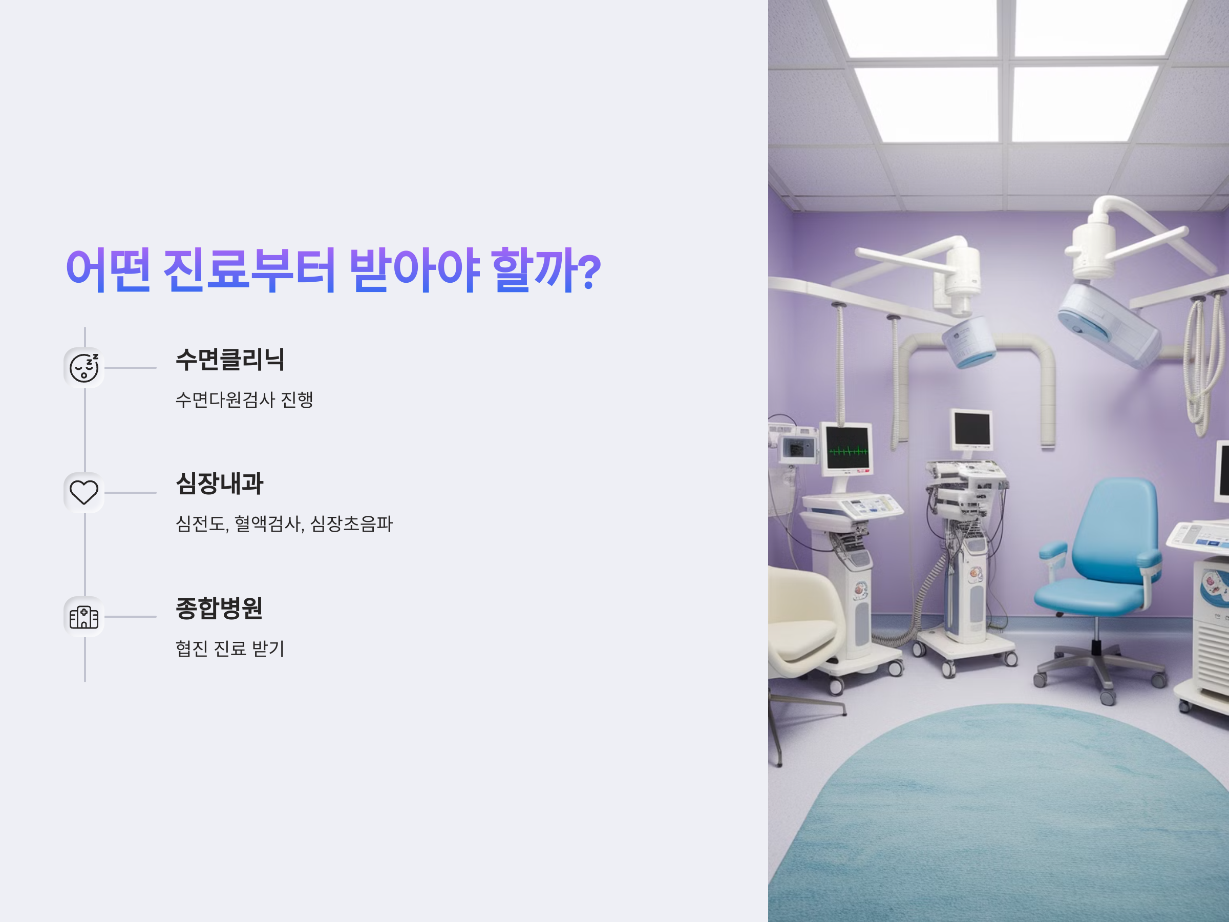 - 정기검진 받기: 수면 클리닉이나 심장내과의 정기적인 진료는 조기발견에 큰 도움이 됩니다.