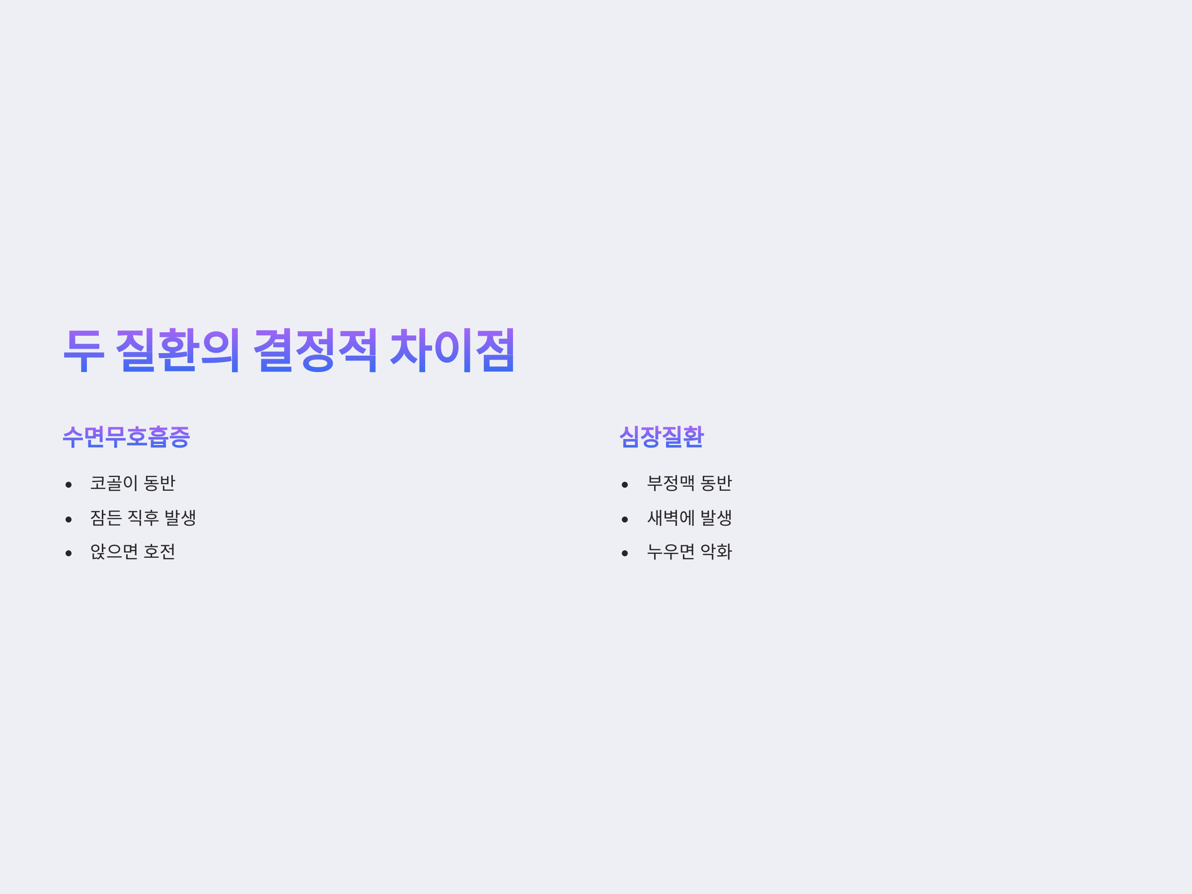 두 질환의 결정적 차이점은 ‘호흡 패턴’과 ‘심박 변화’