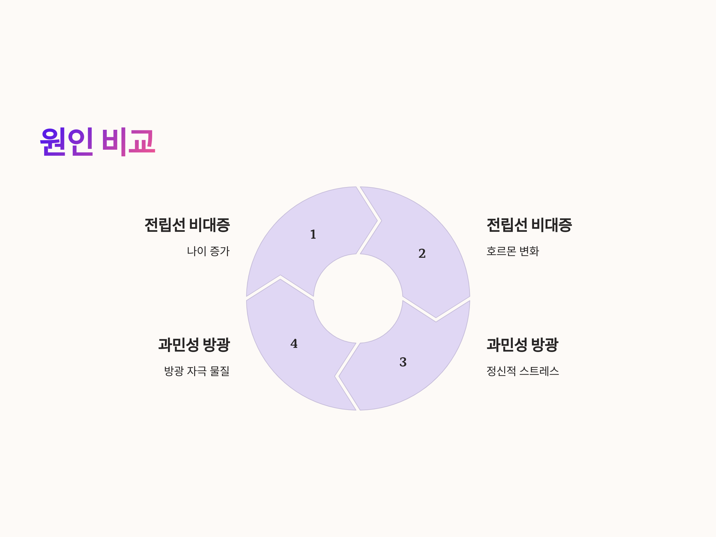 - 전립선 비대증은 주로 전립선의 비대로 인해 발생하며, 남성의 생리적인 변화와 관련이 있습니다.