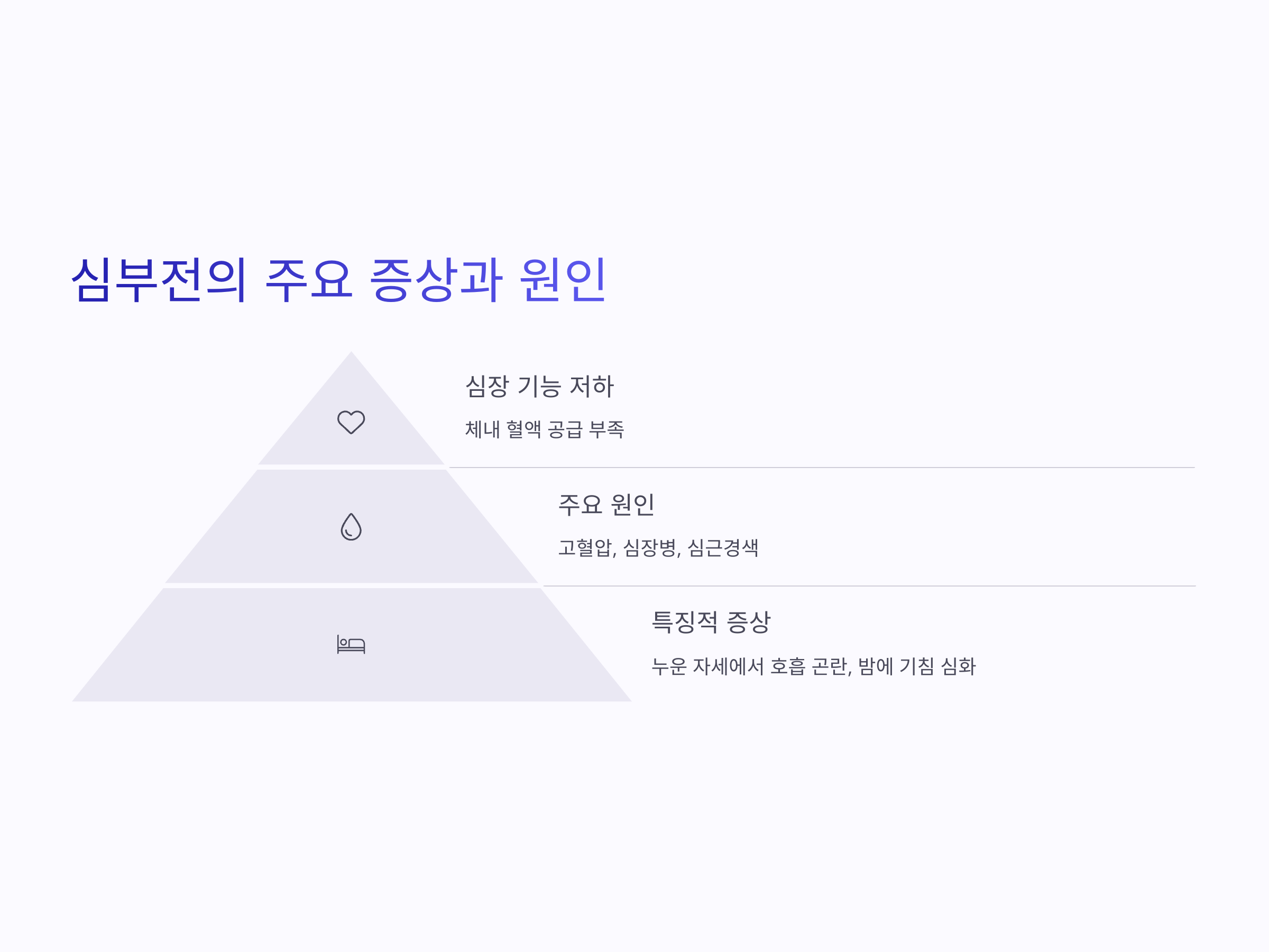 심부전은 심장이 제 기능을 다하지 못하고, 체내에 충분한 혈액을 공급하지 못하는 상태를 말합니다. 심부전은 다양한 원인에 의해 발생할 수 있는데, 가장 흔한 원인으로는 고혈압, 심장병, 심근경색 등이 있습니다. 심부전의 주요 증상은 호흡 곤란, 피로감, 부종 등이 있으며, 특히 밤에 숨이 막히는 증상이 심해지는 경향이 있습니다.