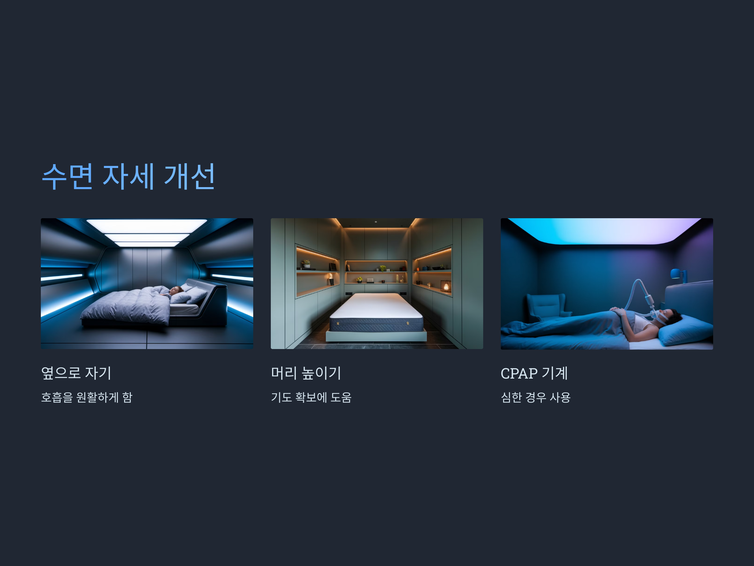수면무호흡증을 예방하려면, 체중 관리가 중요합니다. 과체중이나 비만이 수면무호흡증을 악화시킬 수 있기 때문입니다. 또한, 수면 자세를 개선하는 것도 도움이 됩니다. 등을 대고 자는 것보다는 옆으로 자는 것이 호흡에 더 유리할 수 있습니다. 만약 수면무호흡증이 의심되면, 전문적인 진단을 통해 적절한 치료 방법을 찾는 것이 필요합니다.