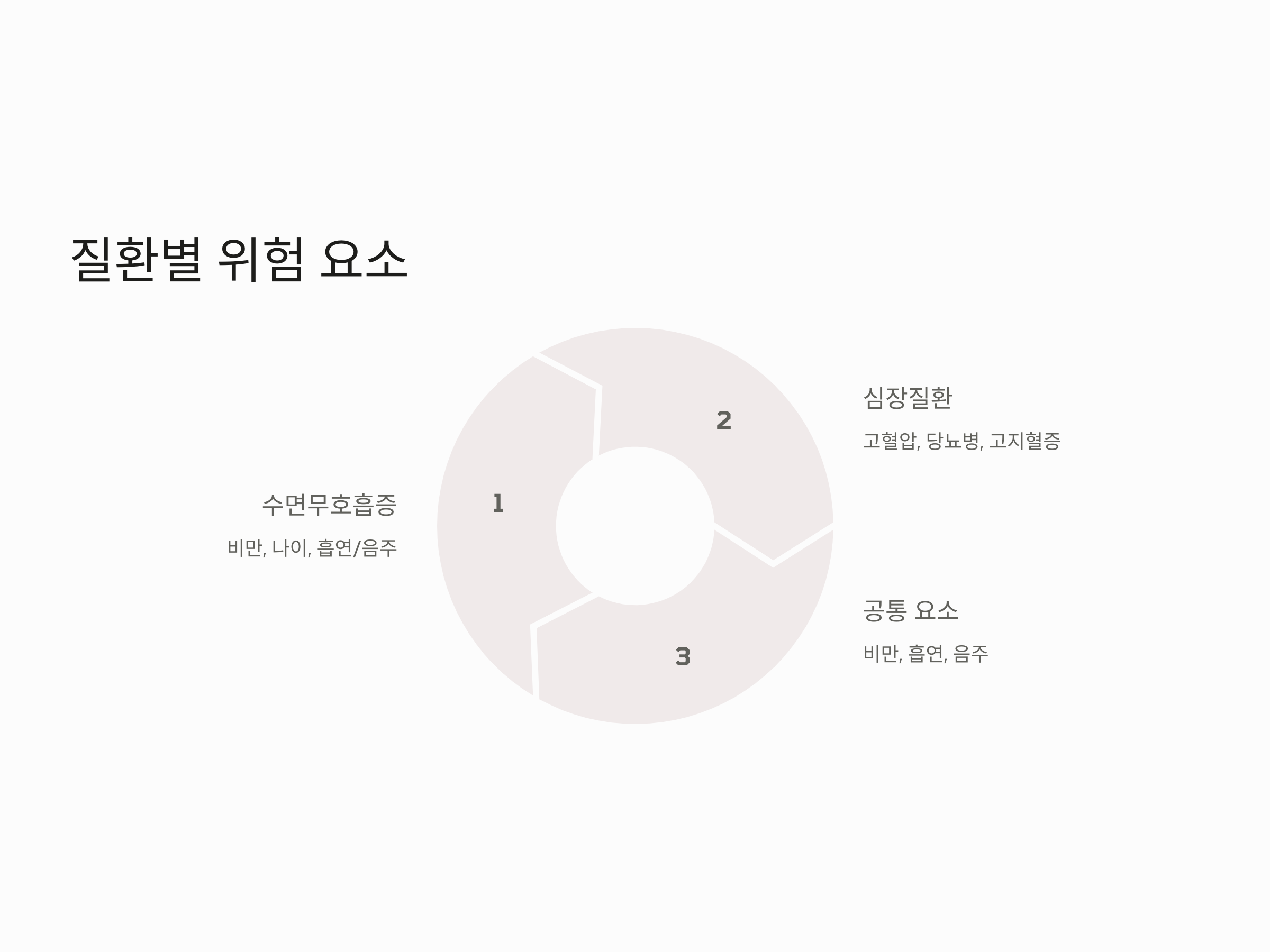 - 비만: 체중이 많이 나갈수록 기도가 좁아져 무호흡증의 위험이 증가합니다.