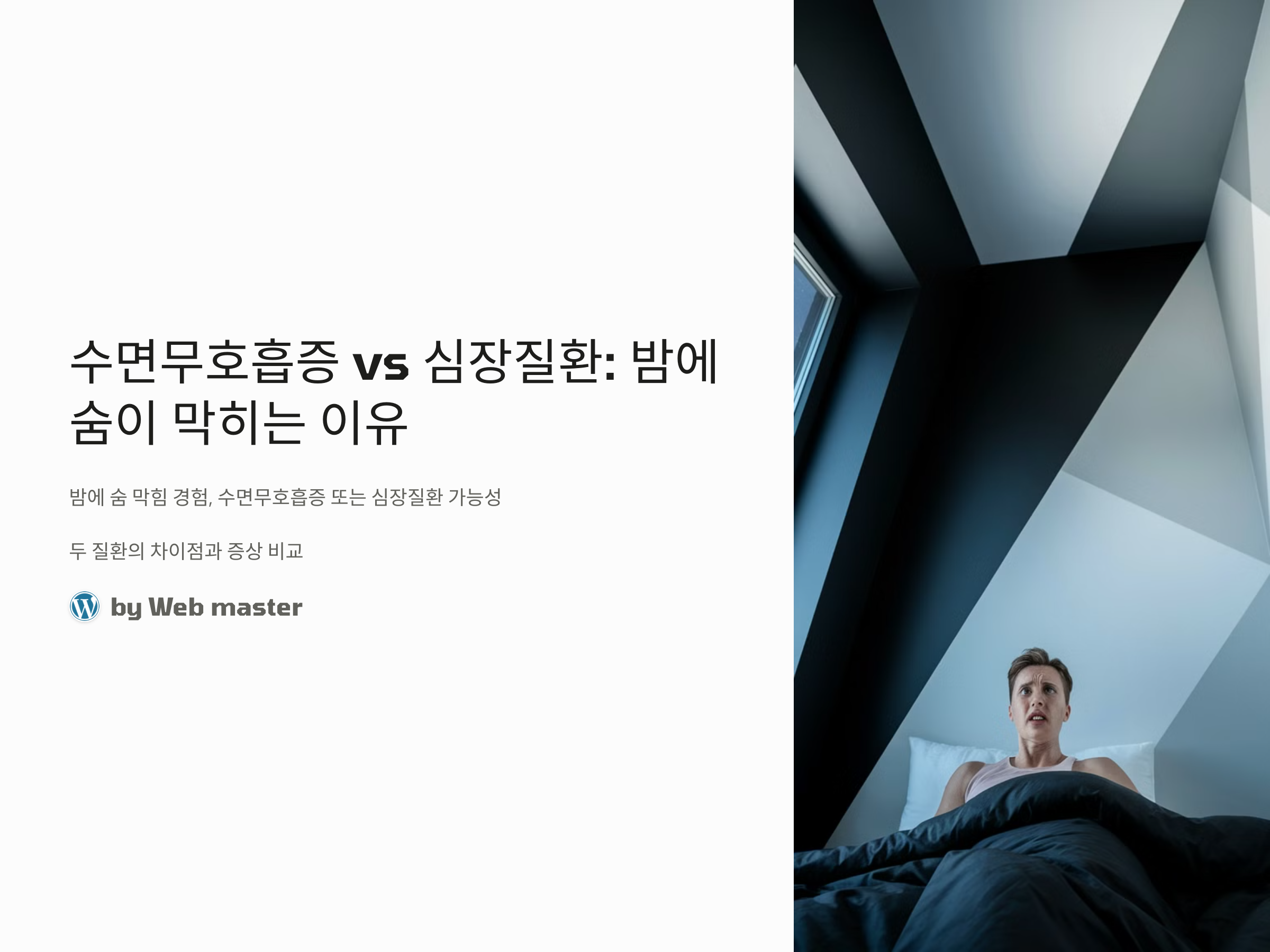 디스크립션: 수면 중 숨이 막히거나 답답함을 느끼는 증상은 수면무호흡증이나 심장질환의 신호일 수 있습니다. 이 두 질환은 초기 증상이 비슷해 구별이 어려울 수 있지만, 차이를 알면 예방이 가능합니다. 이 글에서는 두 질환의 차이점과 증상을 상세히 비교하고, 어떤 경우에 의사를 찾아야 하는지 알려드립니다.