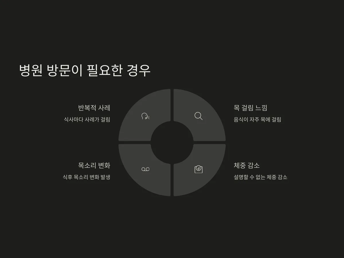 - 기침이 자주 나고, 식후 목소리 변화가 있을 때