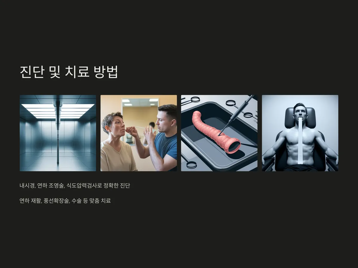 의심되는 증상이 있을 때는 내시경, 연하 조영술, 식도압력검사 등을 통해 정확한 진단을 받아야 하며, 자가 치료보다는 전문의의 조언을 따르는 것이 중요합니다.
