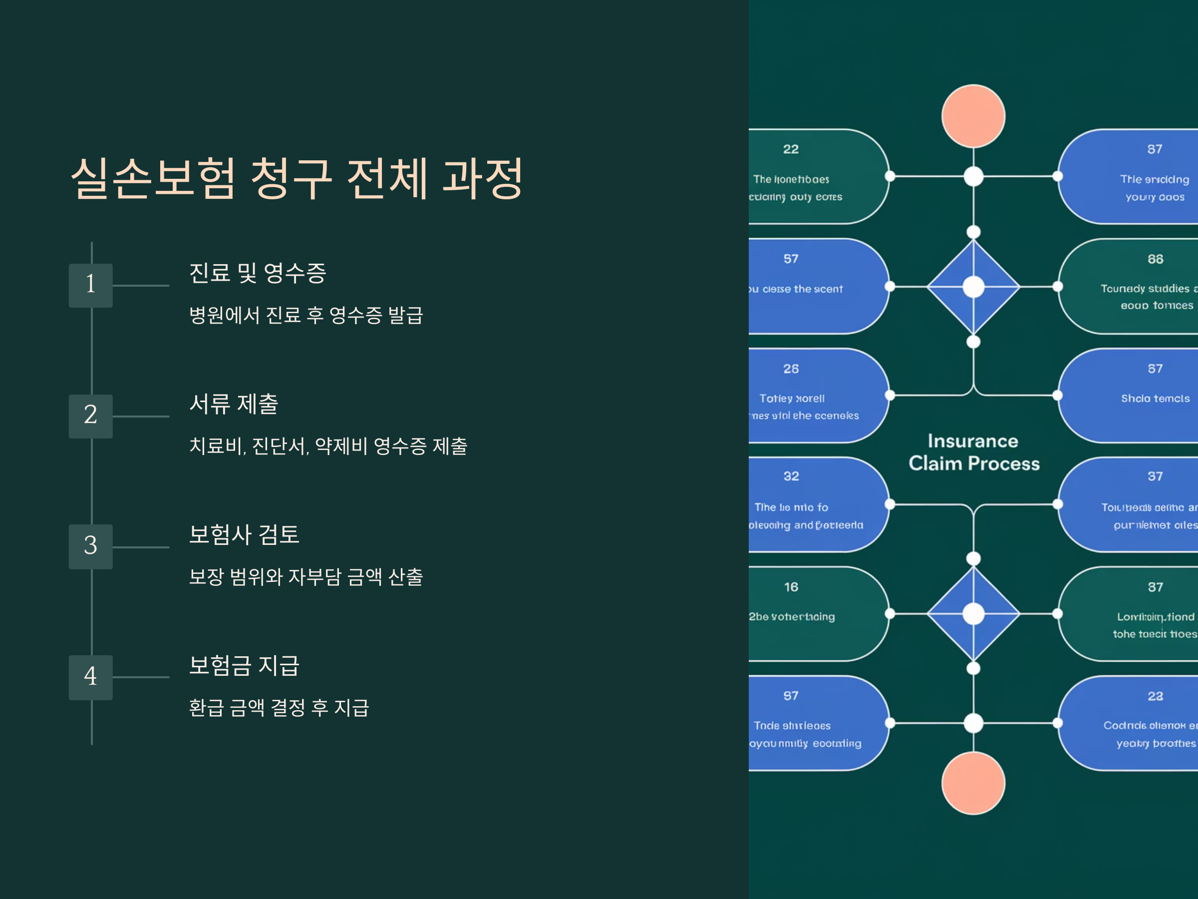 두 번째 단계는 서류를 제출한 후, 보험사가 서류를 검토하고 보험금을 산정하는 과정입니다. 이 과정에서 보험사는 보장 범위와 자부담 금액 등을 고려하여 환급 가능한 금액을 산출합니다. 마지막으로, 환급 금액이 결정되면, 보험금이 지급됩니다.